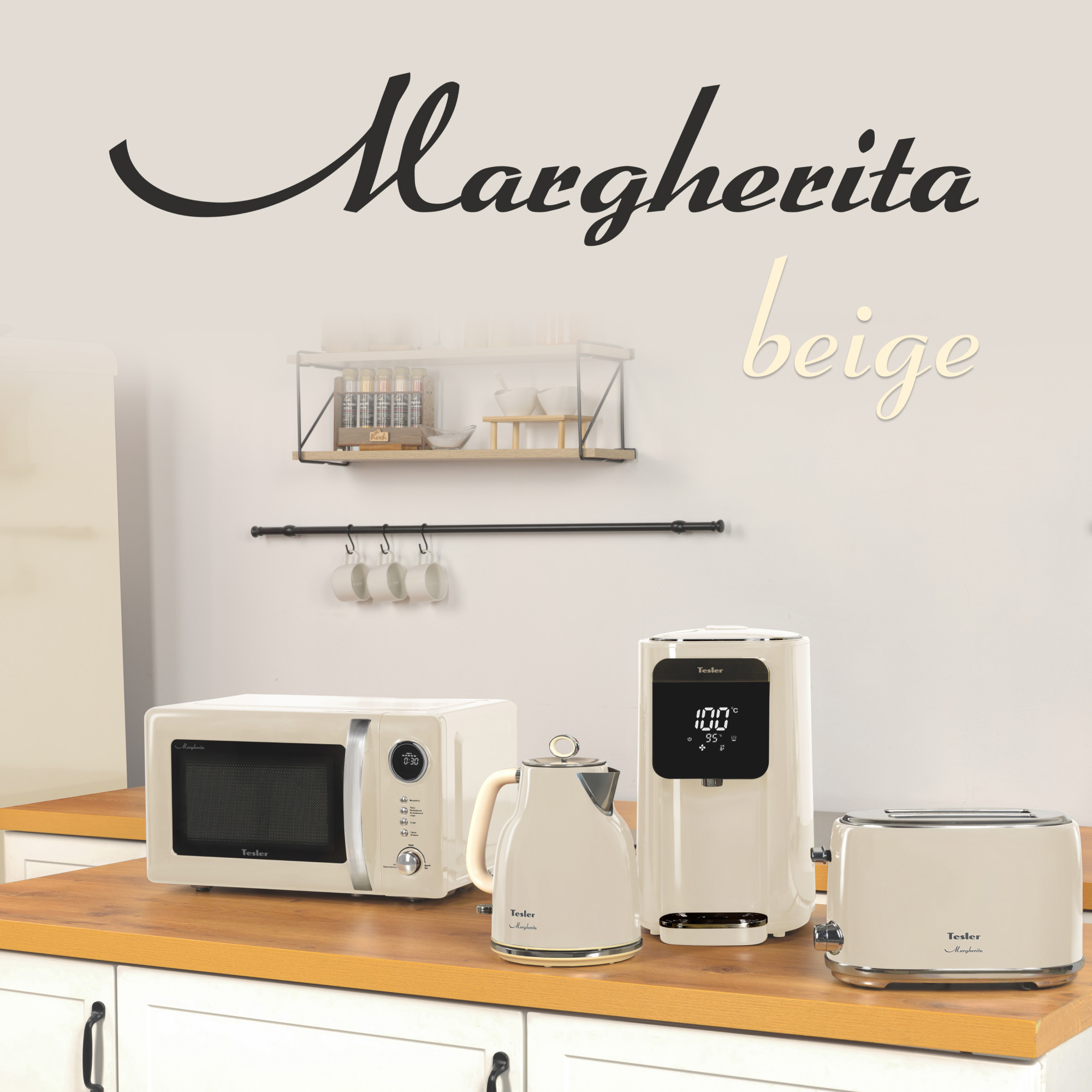 Двухкамерный холодильник Tesler RT-97 является частью коллекции бытовой техники Margherita. Комплект включает в себя кофемашину, двухкамерный холодильник, капучинатор, чайник, микроволновую печь с электронным управлением, термопот с ярким LED дисплеем и тостер с двумя слотами для хлеба.