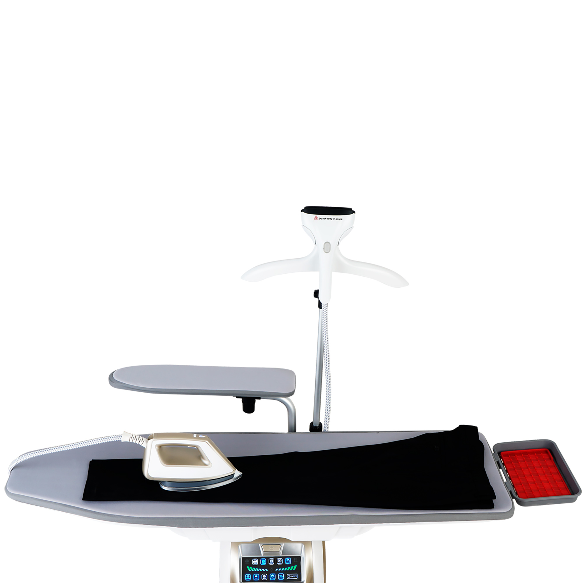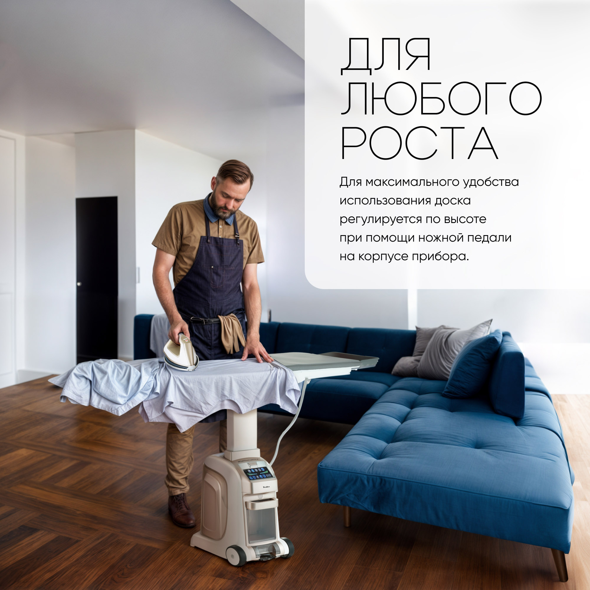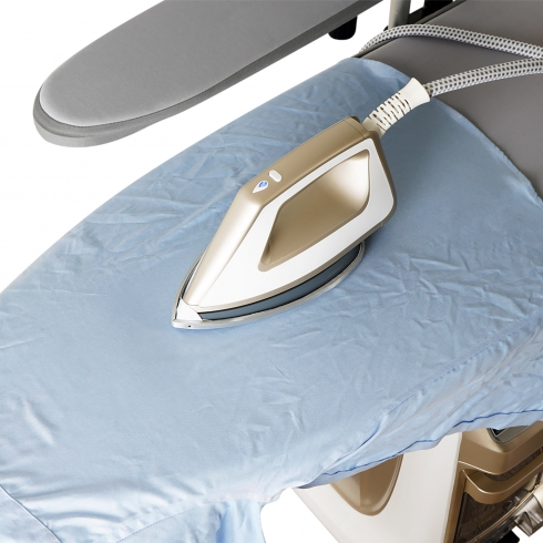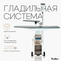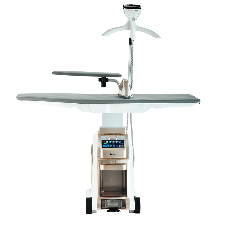 Система отпаривания Tesler SG-5000 сделает утомительное монотонное занятие комфортным. Её верхняя часть представляет собой складную гладильную доску, в которую можно дополнительно установить рукавную платформу. Большая площадь доски и отдельная платформа для глажки рукавов позволяют в считанные минуты прогладить рубашку. Режим поддува создаёт воздушную подушку, которая предотвращает появление лоснящихся участков и отпечатков швов. Режим отвода пара удержит разглаживаемые элементы одежды в ровном положении на доске, помогая идеально прогладить стрелки на брюках. Для максимального удобства использования доска регулируется по высоте при помощи ножной педали на корпусе прибора. Утюг оснащен световым индикатором готовности к работе, кнопками подачи пара и переключения режима. Разогрев занимает всего 3-4 минуты. В комплекте к утюгу поставляется тефлоновая насадка, которая надевается на подошву утюга для глажки нейлоновых и шелковых тканей. По всей площади насадки расположены отверстия, позволяющие легко проходить пару.