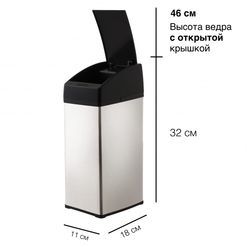 Отличительной особенностью таких урн является наличие сенсорного датчика, который самостоятельно открывает крышку мусоросборника при приближении пользователя к ней на расстояние 10-15 см. Теперь не нужно прикасаться к ведру, чтобы выкинуть мусор, и ваши руки останутся чистыми. Вы можете забыть о необходимости закрывать крышку - через 5 секунд она сама автоматически закроется.