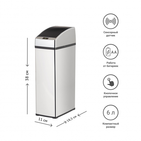 Отличительной особенностью таких урн является наличие сенсорного датчика, который самостоятельно открывает крышку мусоросборника при приближении пользователя к ней на расстояние 10-15 см. Теперь не нужно прикасаться к ведру, чтобы выкинуть мусор, и ваши руки останутся чистыми. Вы можете забыть о необходимости закрывать крышку - через 5 секунд она сама автоматически закроется.