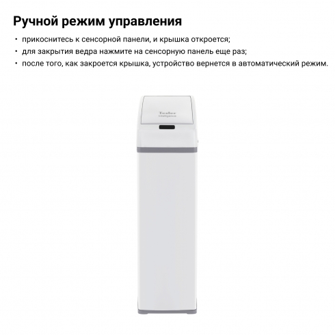 • Опустите мусор в контейнер и затем уберите руки из зоны срабатывания сенсорного датчика, который даст команду на закрытие крышки через 5 сек.