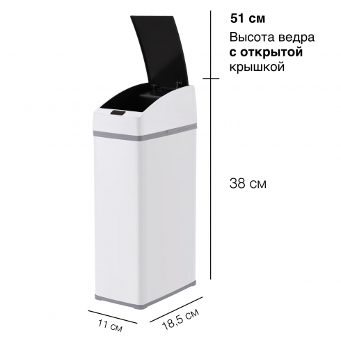 Отличительной особенностью таких урн является наличие сенсорного датчика, который самостоятельно открывает крышку мусоросборника при приближении пользователя к ней на расстояние 10-15 см. Теперь не нужно прикасаться к ведру, чтобы выкинуть мусор, и ваши руки останутся чистыми. Вы можете забыть о необходимости закрывать крышку - через 5 секунд она сама автоматически закроется.