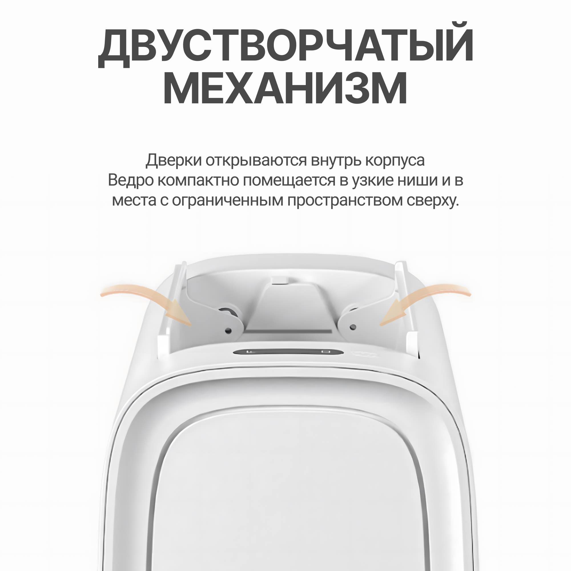 Модель оснащена системой автоматического расправления пакета: вакуумный механизм равномерно распределяет его внутри ведра. Это упрощает использование, сохраняет чистоту и исключает необходимость ручного выравнивания.