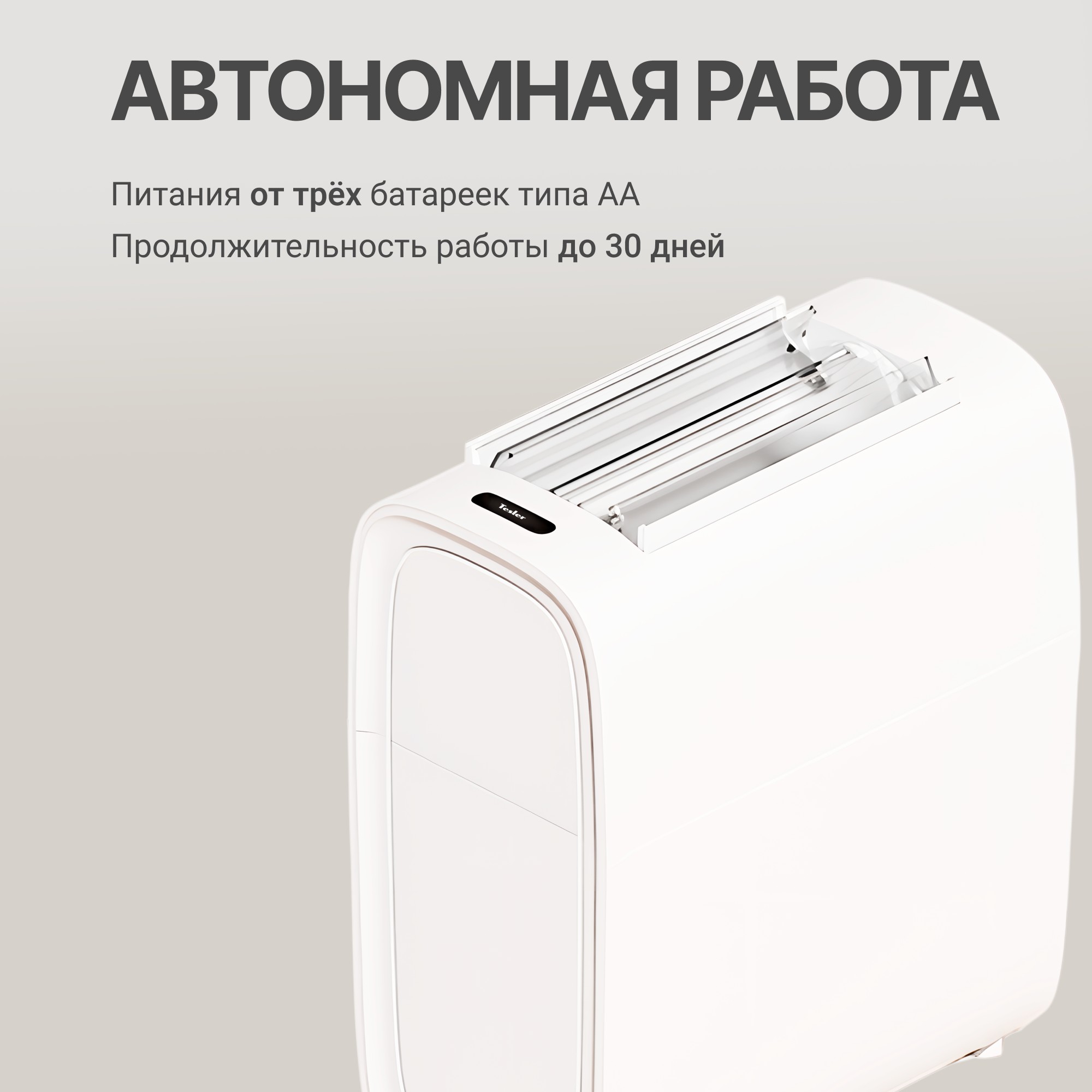 Питание устройства организовано от трёх стандартных элементов типа АА, что подчеркивает его автономность и мобильность. Энергоэффективные алгоритмы работы процессора способствуют продолжительному сроку службы элементов питания.