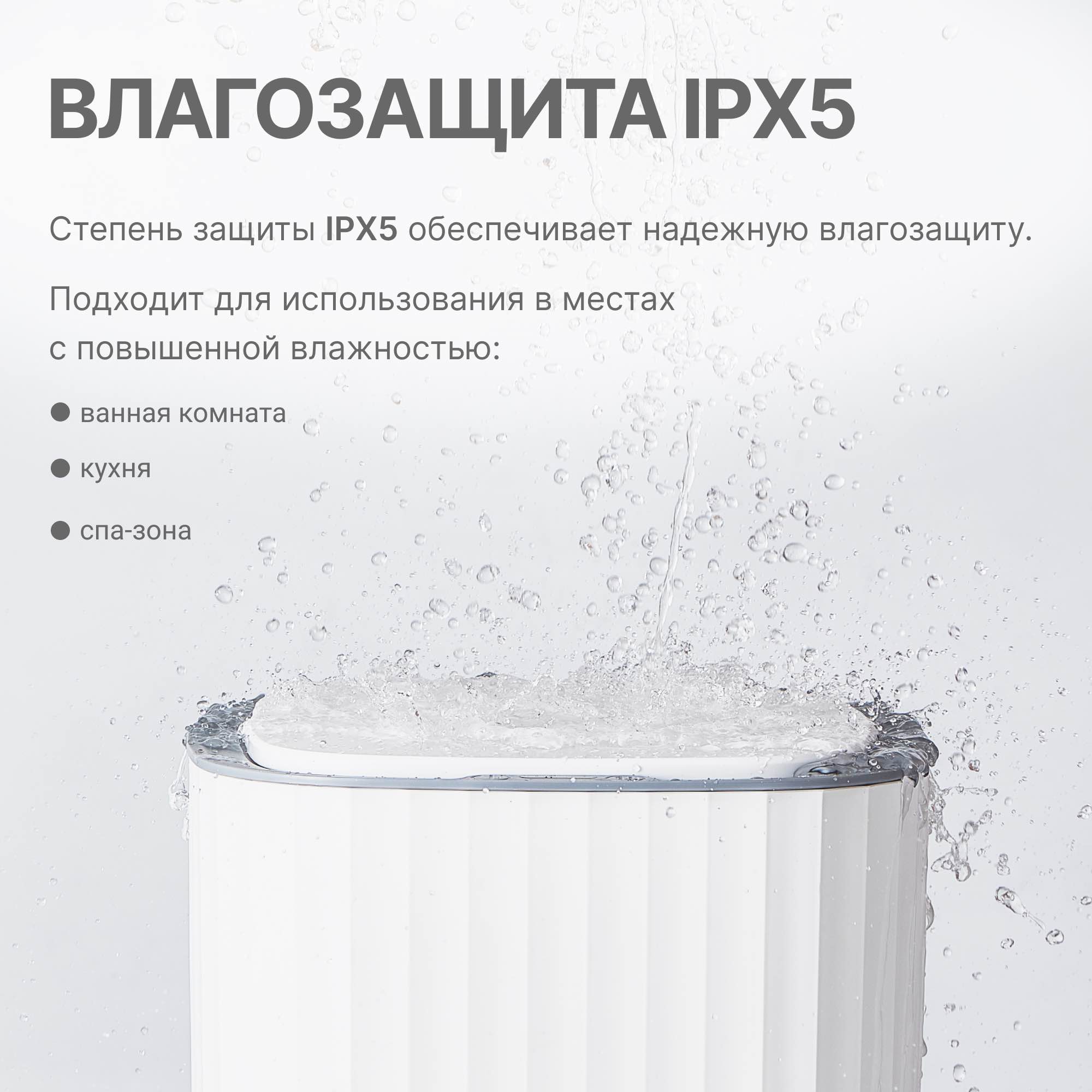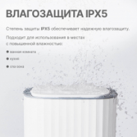 Важной эксплуатационной характеристикой является степень влагозащиты IPX5, которая допускает использование устройства в ванных комнатах, кухнях и иных помещениях с повышенной влажностью. Питание осуществляется от двух автономных источников энергии — батареек типа АА, что гарантирует мобильность и независимость от стационарной электросети.