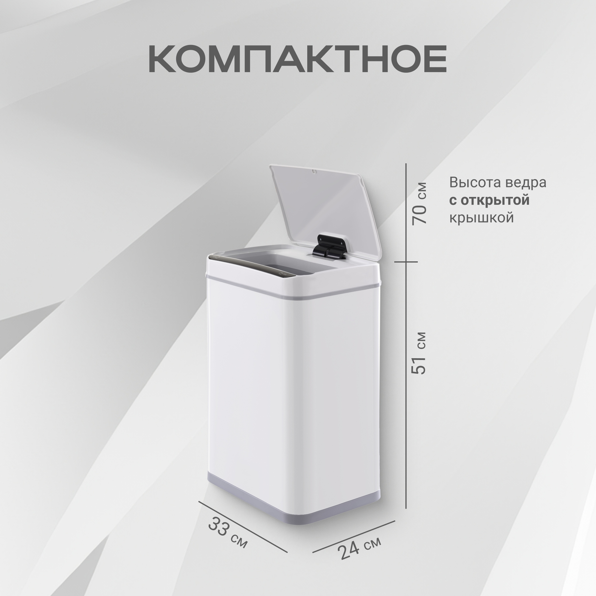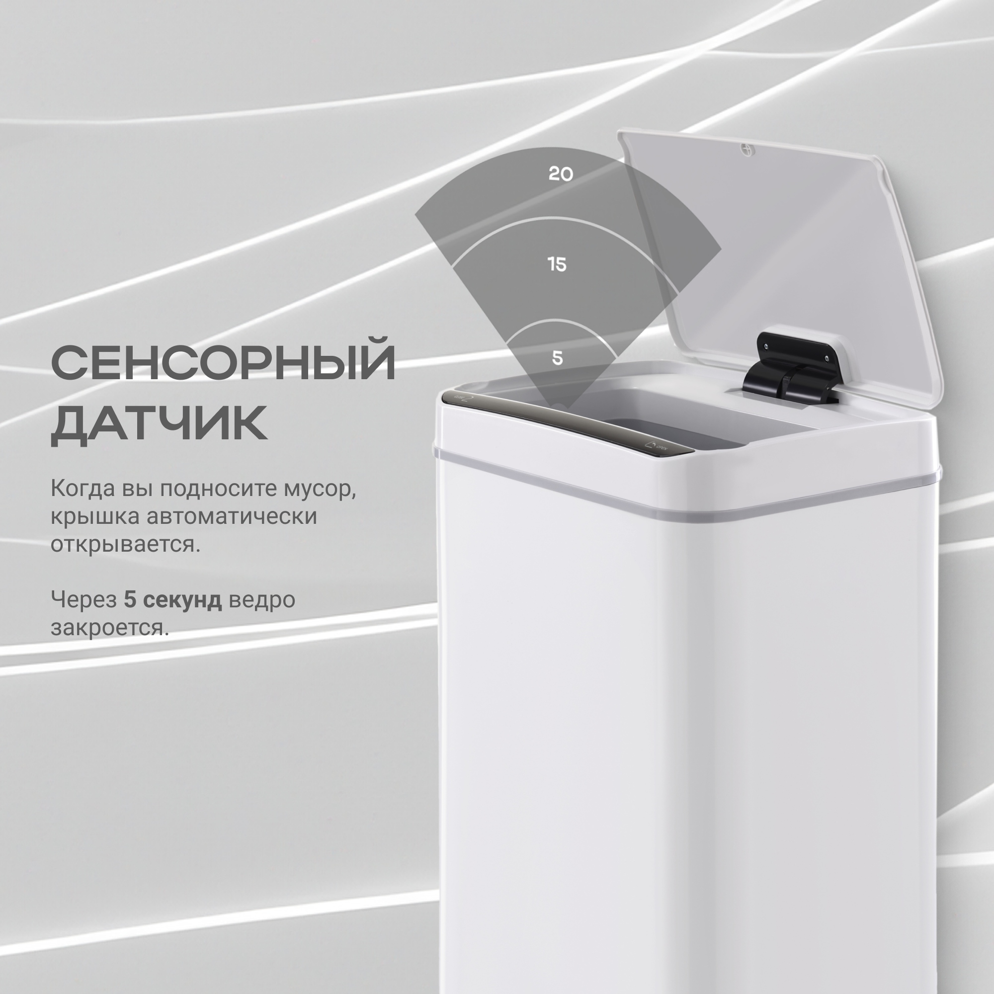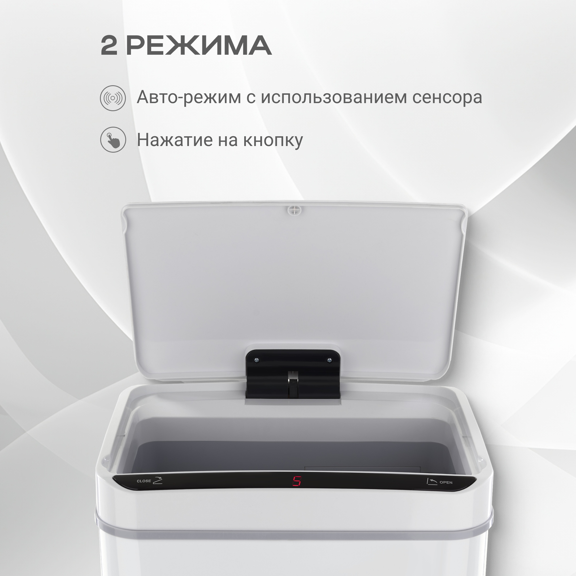 Отличительной особенностью таких урн является наличие сенсорного датчика, который самостоятельно открывает крышку мусоросборника при приближении пользователя к ней на расстояние 10-15см. Теперь не нужно прикасаться к ведру, чтобы выкинуть мусор, и ваши руки останутся чистыми. Вы можете забыть о необходимости закрывать крышку - через 5 секунд она сама автоматически закроется.