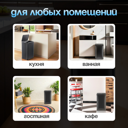 Простая прямоугольная форма удачно впишется в любой интерьер. Модель объемом 40 литров легко вмещает все отходы, которые накапливаются в течение дня у больших семей.