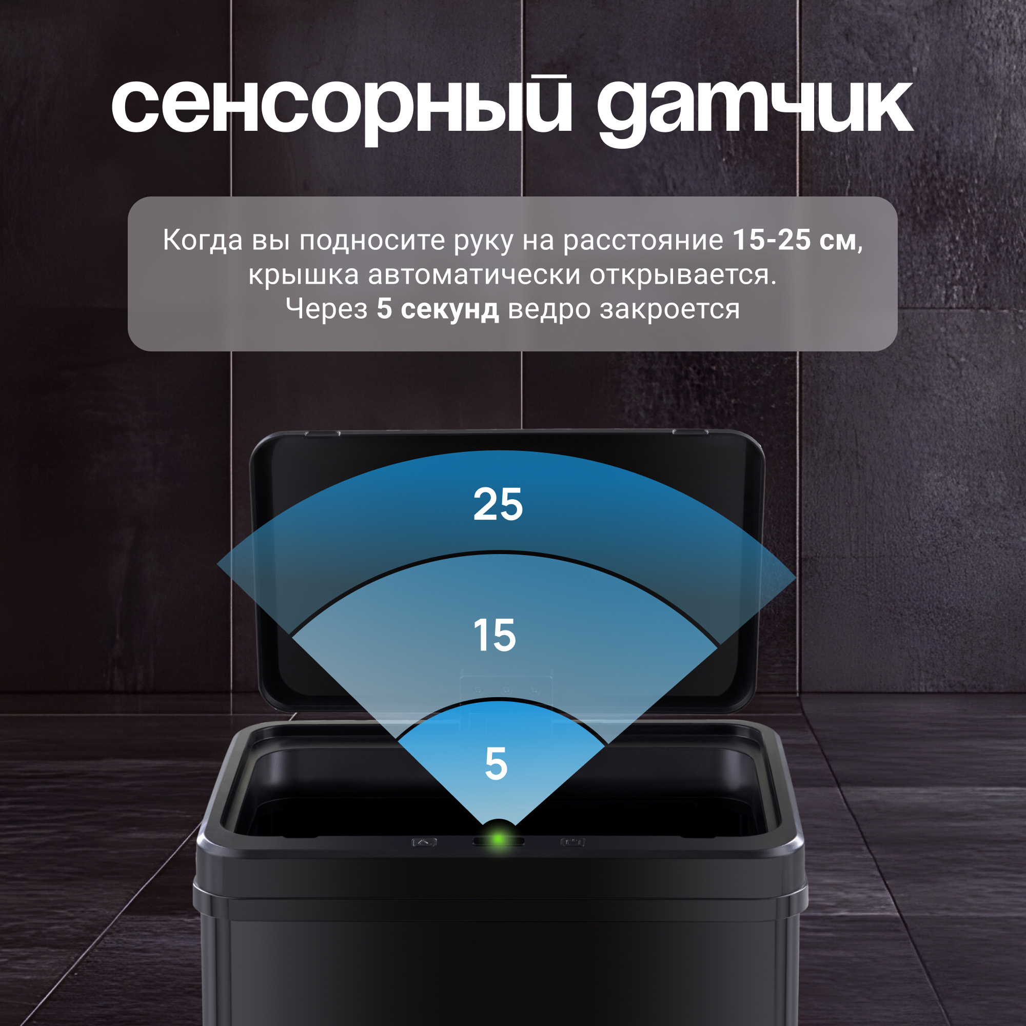 Больше нет необходимости прикасаться к мусорному ведру – просто поднесите руку, и крышка автоматически откроется.