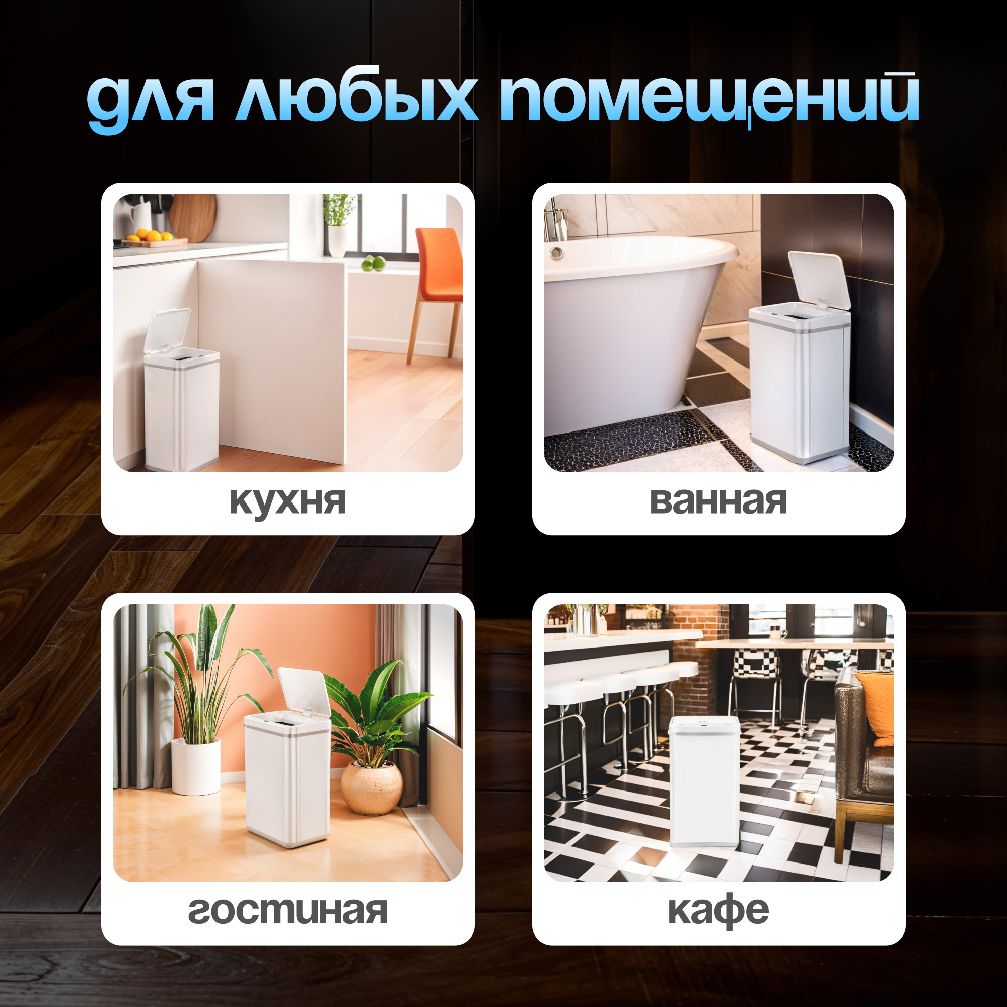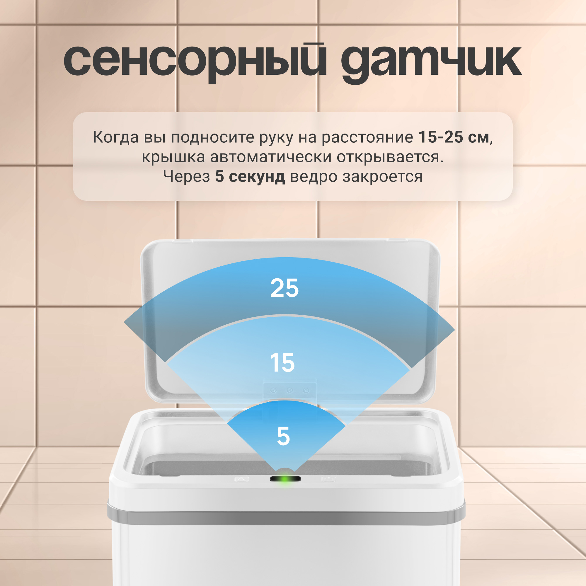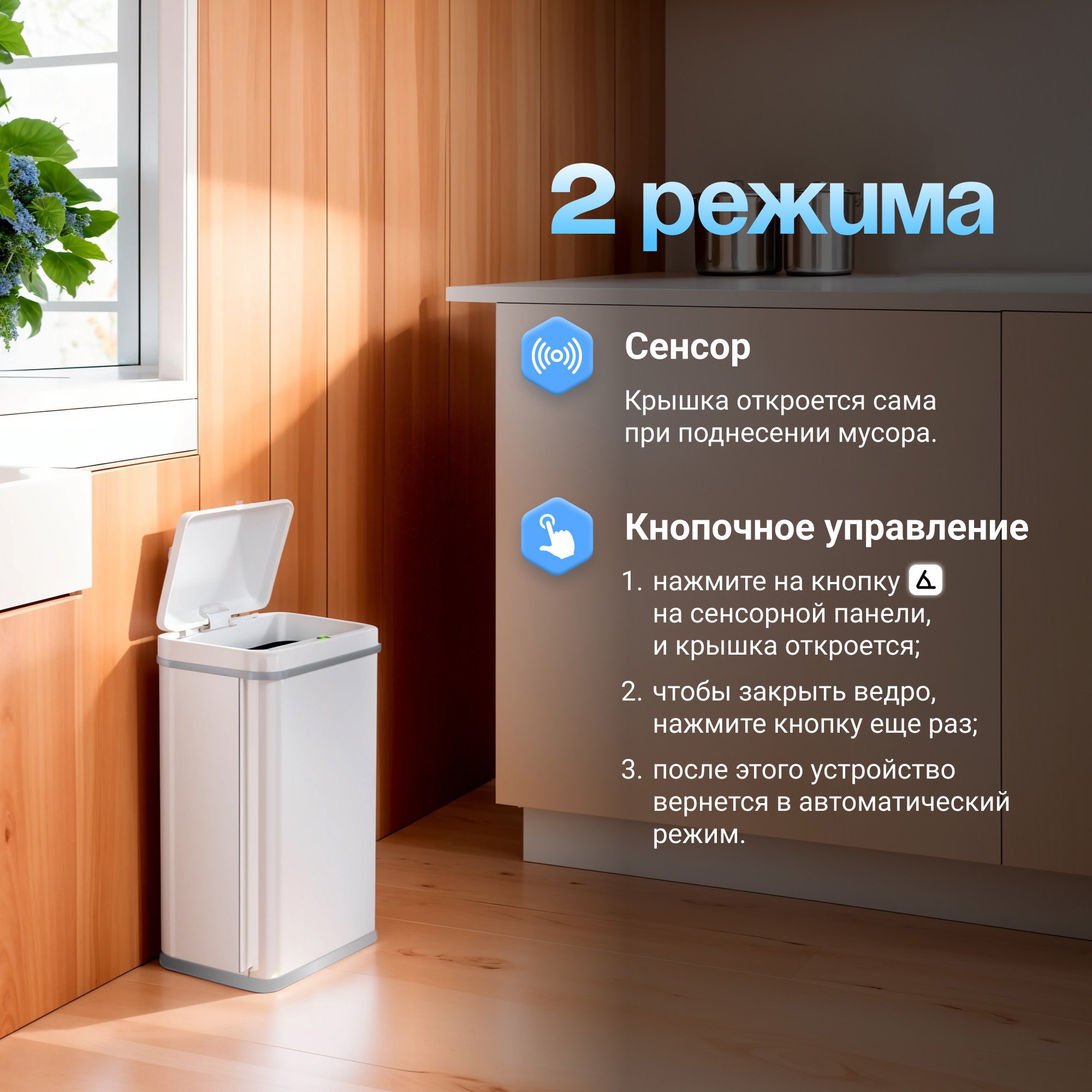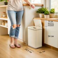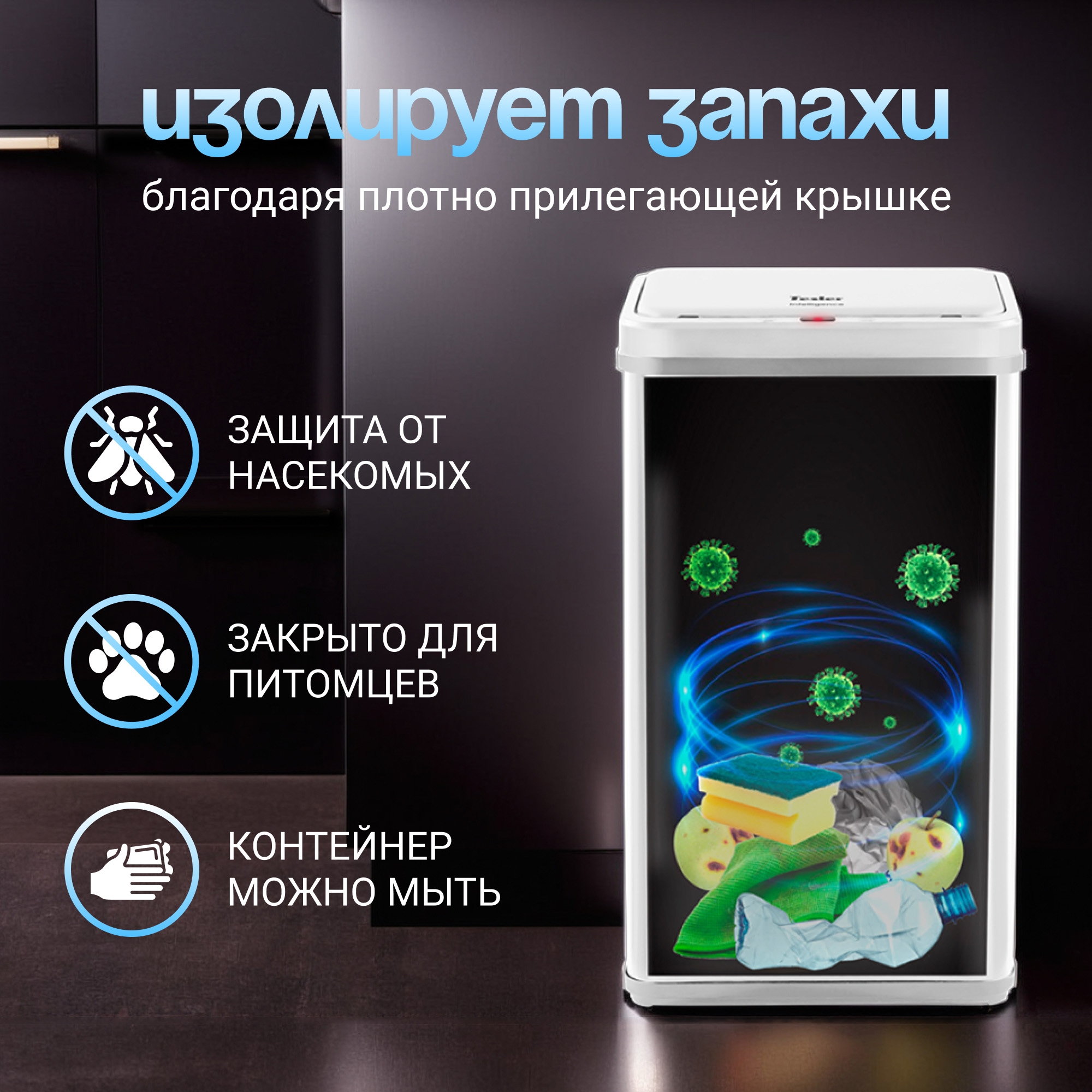 Больше никаких неприятных запахов: благодаря плотно прилегающей крышке содержимое внутри ведра изолировано. Бесконтактная работа делает прибор незаменимым везде, где есть необходимость утилизации отходов: дома, на даче, в офисе, магазине и других помещениях, таких как салоны красоты или медицинские центры. Индикаторы на дисплее позволят отслеживать актуальную информацию об устройстве, в том числе низкий уровень заряда батарей.