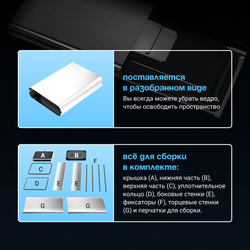 Складное сенсорное мусорное ведро Tesler STB-40F – стильный и функциональный аксессуар, который сделает ваш быт комфортным. Комплектация включает в себя ведро в разобранном виде, крышку, уплотнительное кольцо и инструкцию на русском языке.