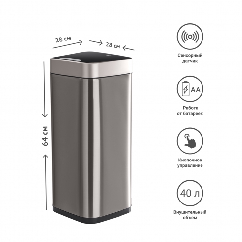 Отличительной особенностью таких урн является наличие сенсорного датчика, который самостоятельно открывает крышку мусоросборника при поднесении руки на расстояние 10-15 см от него. Теперь не нужно прикасаться к ведру, чтобы выкинуть мусор, и ваши руки останутся чистыми. Если вы забыли закрыть крышку - через 5 секунд она автоматически закроется сама. Для более удобной замены мешка на крышке устройства предусмотрено специальное крепление для фиксации.