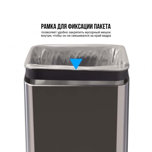 Отличительной особенностью таких урн является наличие сенсорного датчика, который самостоятельно открывает крышку мусоросборника при поднесении руки на расстояние 10-15 см от него. Теперь не нужно прикасаться к ведру, чтобы выкинуть мусор, и ваши руки останутся чистыми. Если вы забыли закрыть крышку - через 5 секунд она автоматически закроется сама. Для более удобной замены мешка на крышке устройства предусмотрено специальное крепление для фиксации.