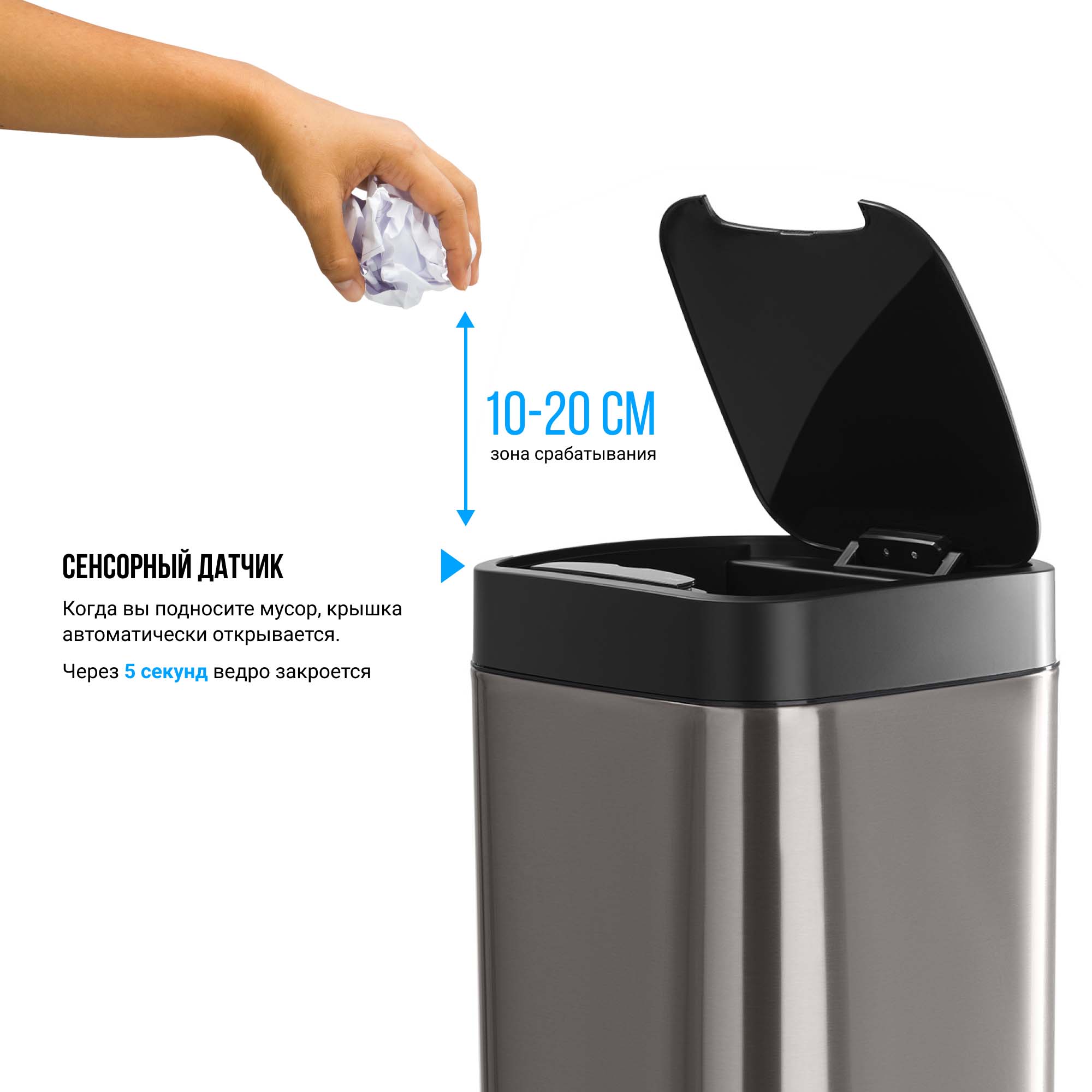 • Поднесите руку к ведру и датчик движения тотчас же распознает ваше действие и распахнет створку, открывая доступ внутрь сенсорного ведра.