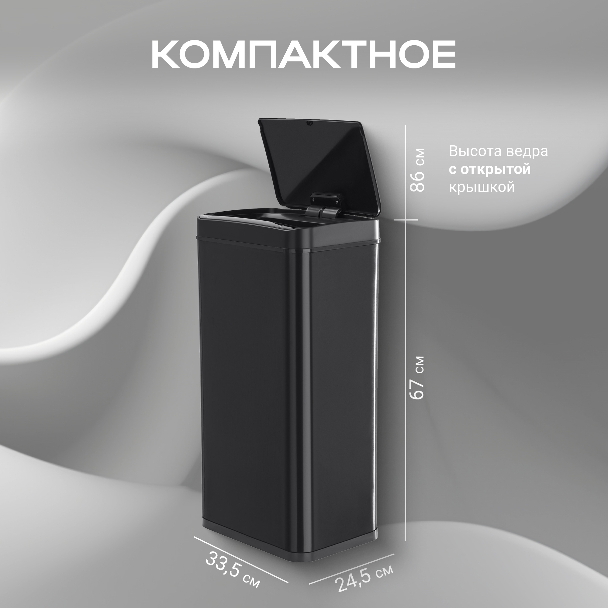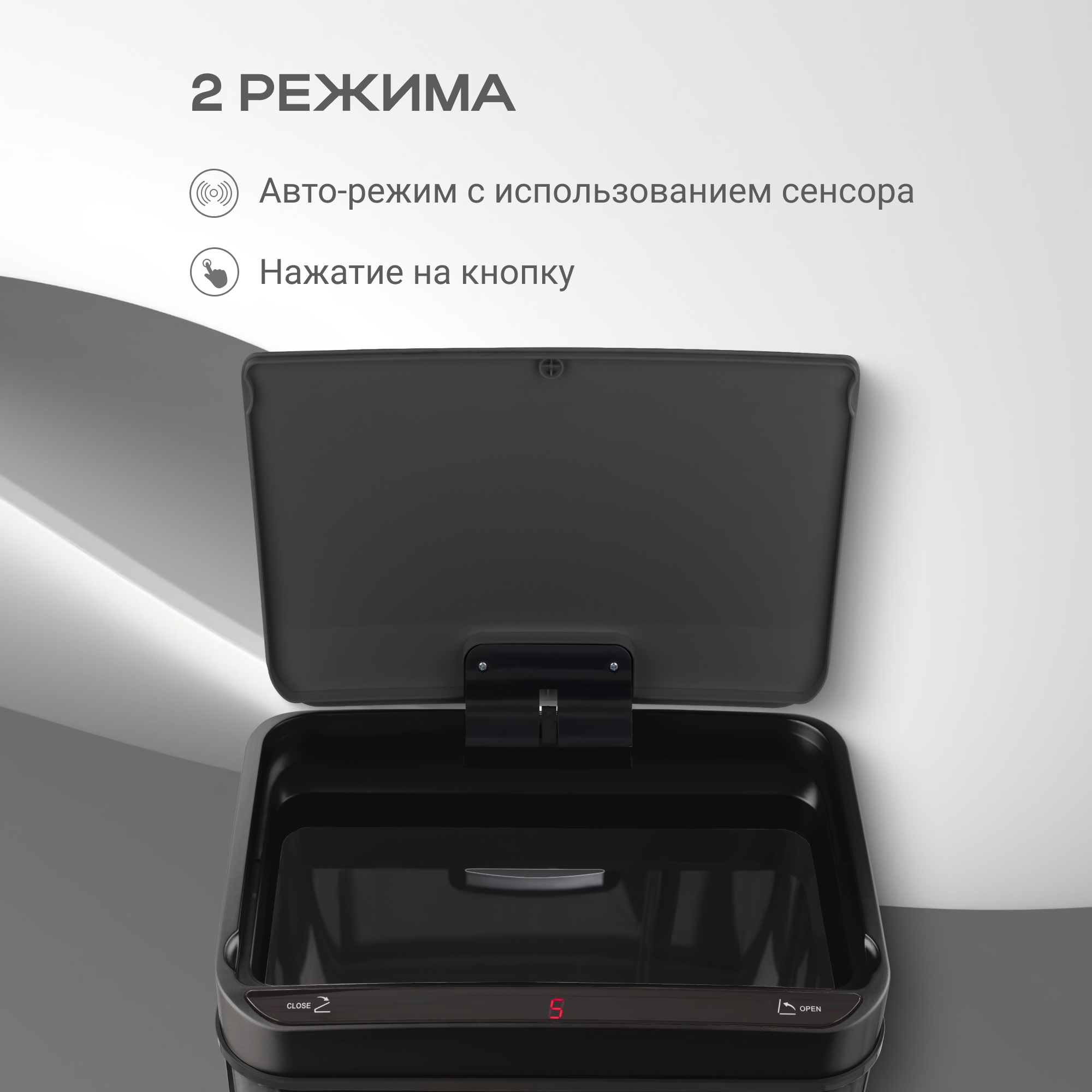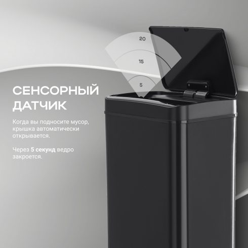 Отличительной особенностью таких урн является наличие сенсорного датчика, который самостоятельно открывает крышку мусоросборника при приближении пользователя к ней на расстояние 10-15см. Теперь не нужно прикасаться к ведру, чтобы выкинуть мусор, и ваши руки останутся чистыми. Вы можете забыть о необходимости закрывать крышку - через 5 секунд она сама автоматически закроется.