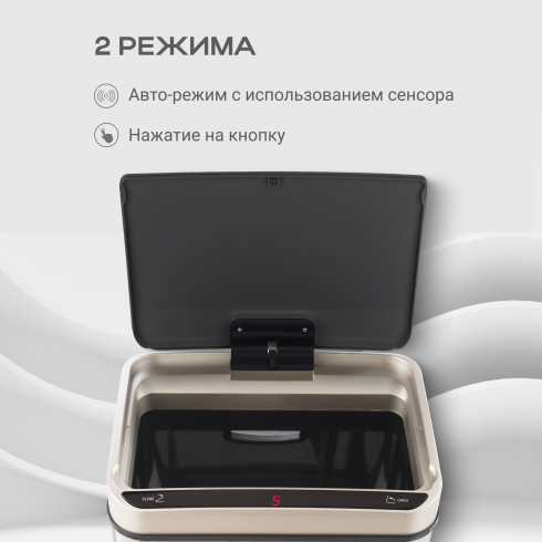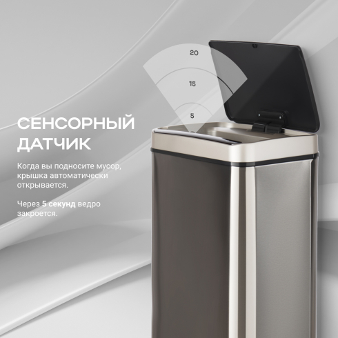 Отличительной особенностью таких урн является наличие сенсорного датчика, который самостоятельно открывает крышку мусоросборника при приближении пользователя к ней на расстояние 10-15см. Теперь не нужно прикасаться к ведру, чтобы выкинуть мусор, и ваши руки останутся чистыми. Вы можете забыть о необходимости закрывать крышку - через 5 секунд она сама автоматически закроется.