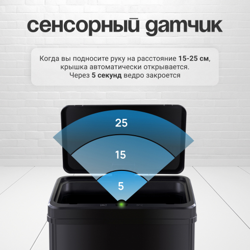 Больше нет необходимости прикасаться к мусорному ведру – просто поднесите руку, и крышка автоматически откроется.