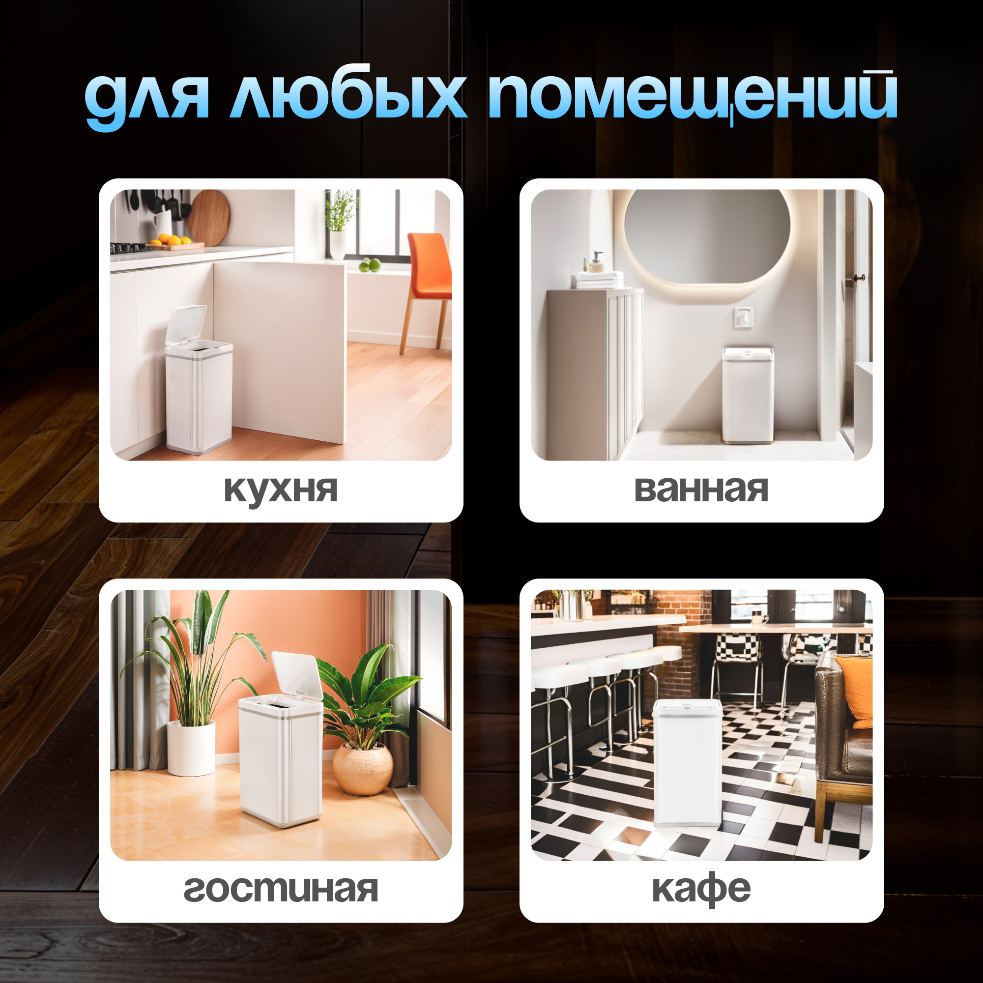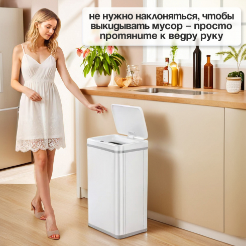 Больше никаких неприятных запахов: благодаря плотно прилегающей крышке содержимое внутри ведра изолировано. Бесконтактная работа делает прибор незаменимым везде, где есть необходимость утилизации отходов: дома, на даче, в офисе, магазине и других помещениях, таких как салоны красоты или медицинские центры. Индикаторы на дисплее позволят отслеживать актуальную информацию об устройстве, в том числе низкий уровень заряда батарей.