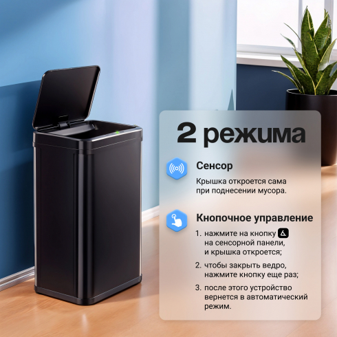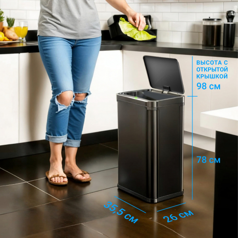 Больше никаких неприятных запахов: благодаря плотно прилегающей крышке содержимое внутри ведра изолировано. Бесконтактная работа делает прибор незаменимым везде, где есть необходимость утилизации отходов: дома, на даче, в офисе, магазине и других помещениях, таких как салоны красоты или медицинские центры. Индикаторы на дисплее позволят отслеживать актуальную информацию об устройстве, в том числе низкий уровень заряда батарей.