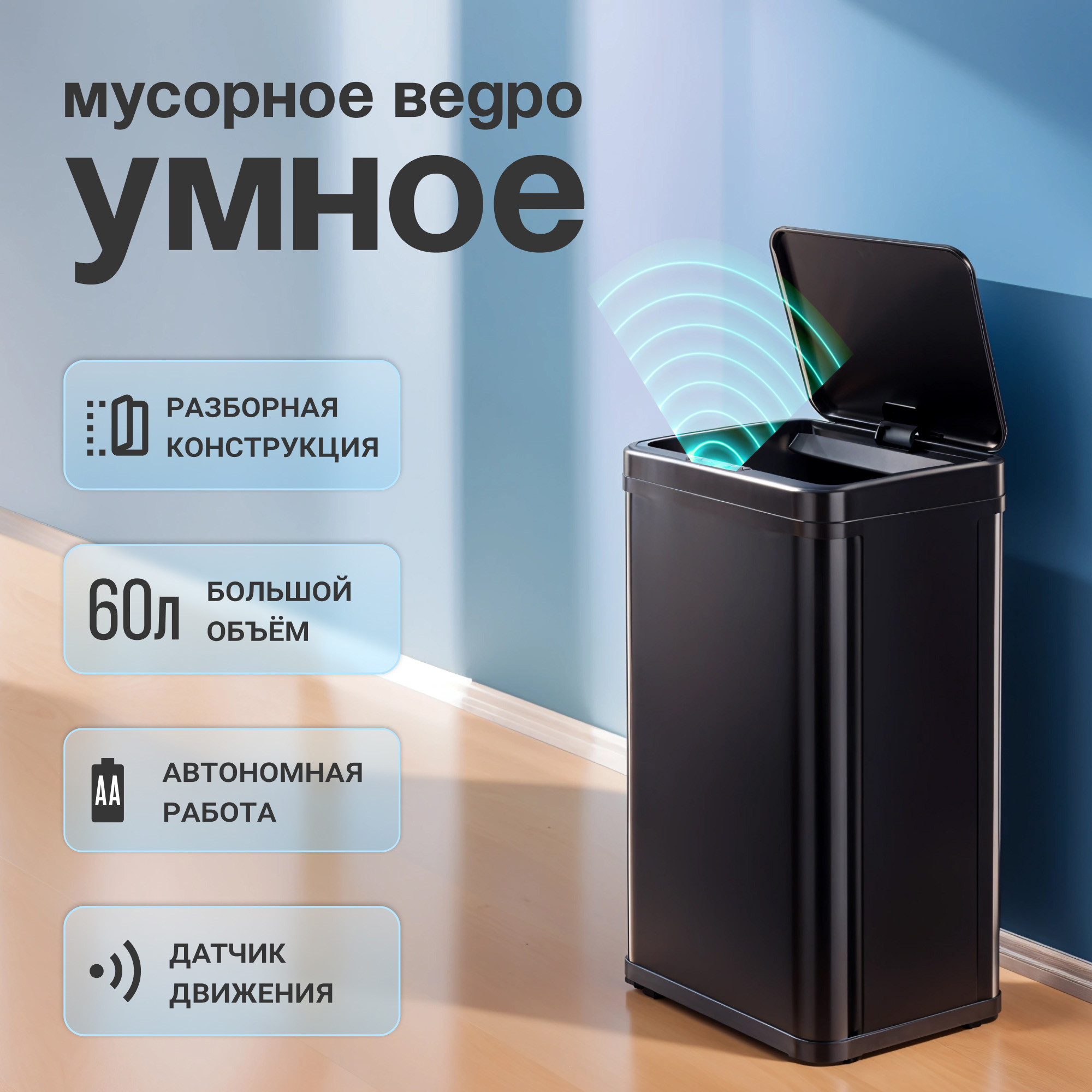 Простая прямоугольная форма удачно впишется в любой интерьер. Модель объемом 60 литров легко вмещает все отходы, которые накапливаются в течение дня у больших семей.