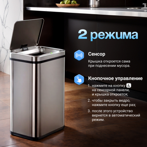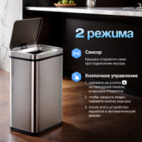 Больше никаких неприятных запахов: благодаря плотно прилегающей крышке содержимое внутри ведра изолировано. Бесконтактная работа делает прибор незаменимым везде, где есть необходимость утилизации отходов: дома, на даче, в офисе, магазине и других помещениях, таких как салоны красоты или медицинские центры. Индикаторы на дисплее позволят отслеживать актуальную информацию об устройстве, в том числе низкий уровень заряда батарей.