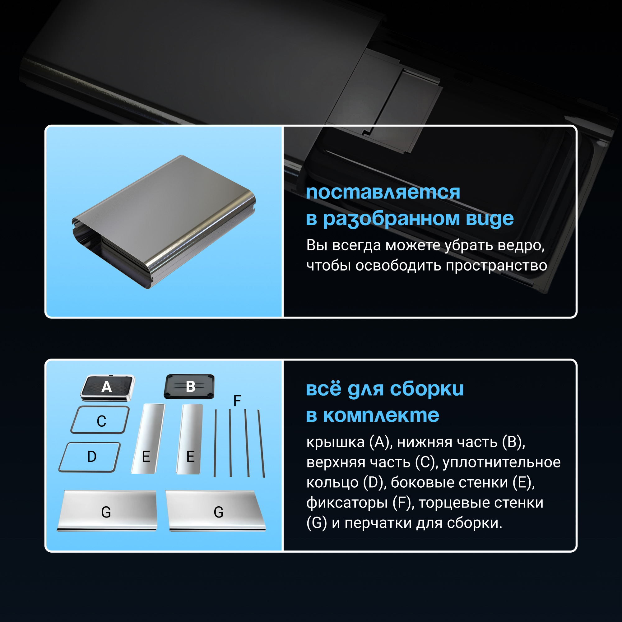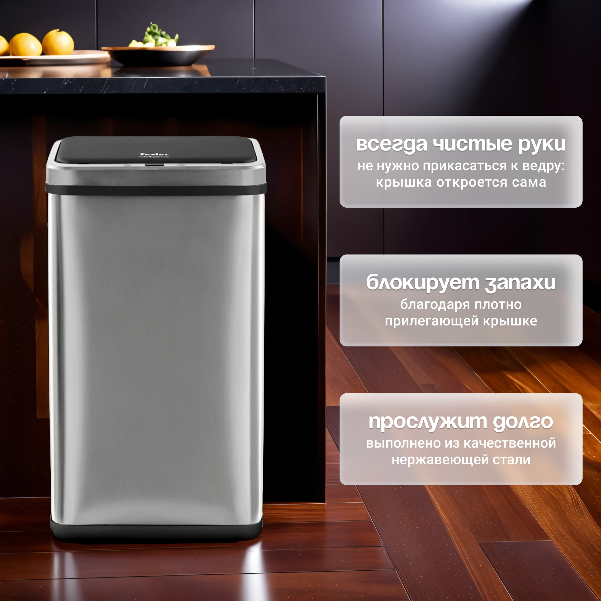 Сенсорное мусорное ведро Tesler STB-60F из нержавеющей стали имеет уникальную возможность складывания, что делает его удобным для хранения и транспортировки. Вы всегда можете легко разобрать ведро, когда оно не нужно, чтобы освободить пространство или перевезти его в другое место.