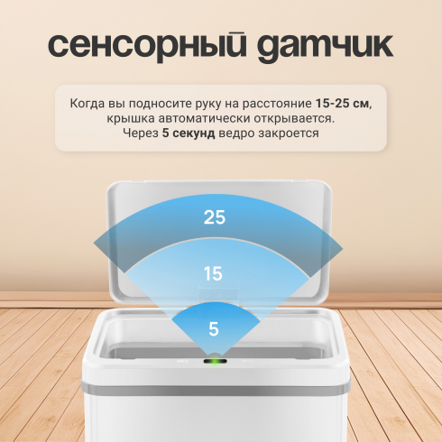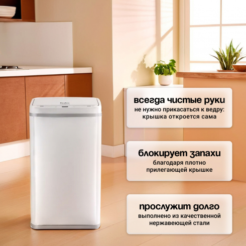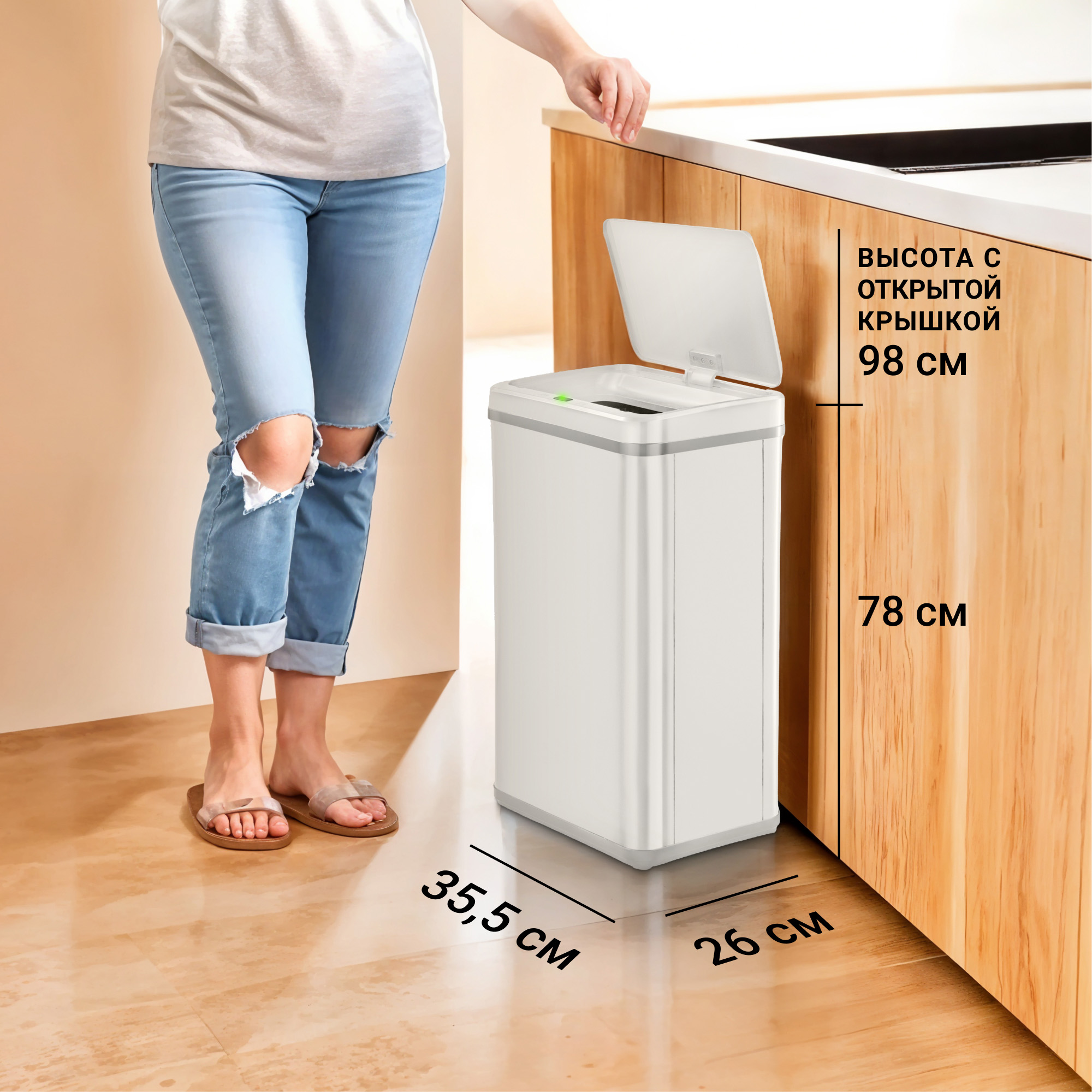 Больше нет необходимости прикасаться к мусорному ведру – просто поднесите руку, и крышка автоматически откроется.