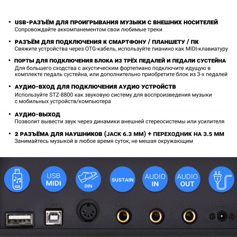 Цифровое профессиональное пианино Tesler STZ-8800 будет отличным приобретением как для опытных игроков, так и для начинающих музыкантов.