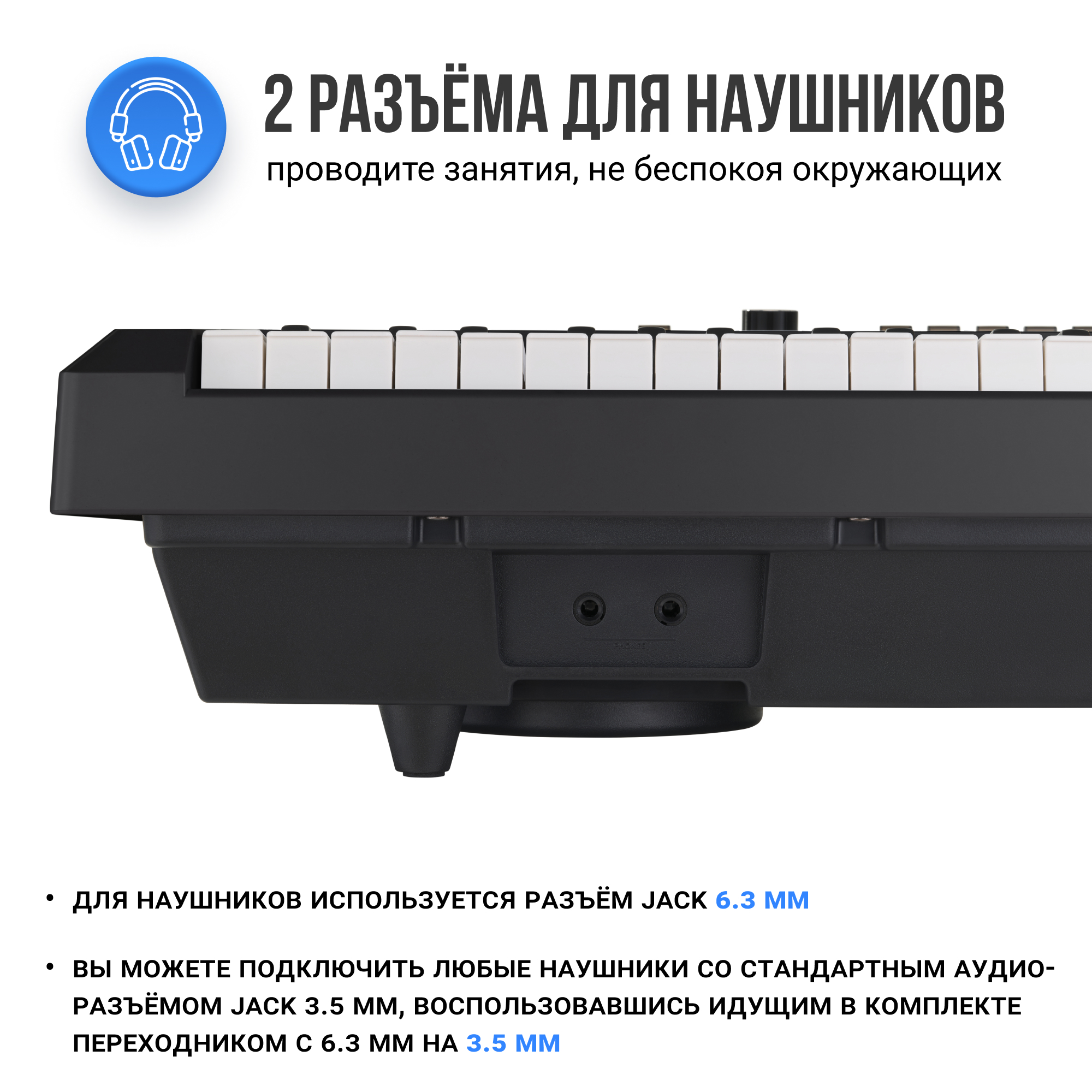 Разъём для наушников поможет заниматься в любое время суток, не мешая окружающим.