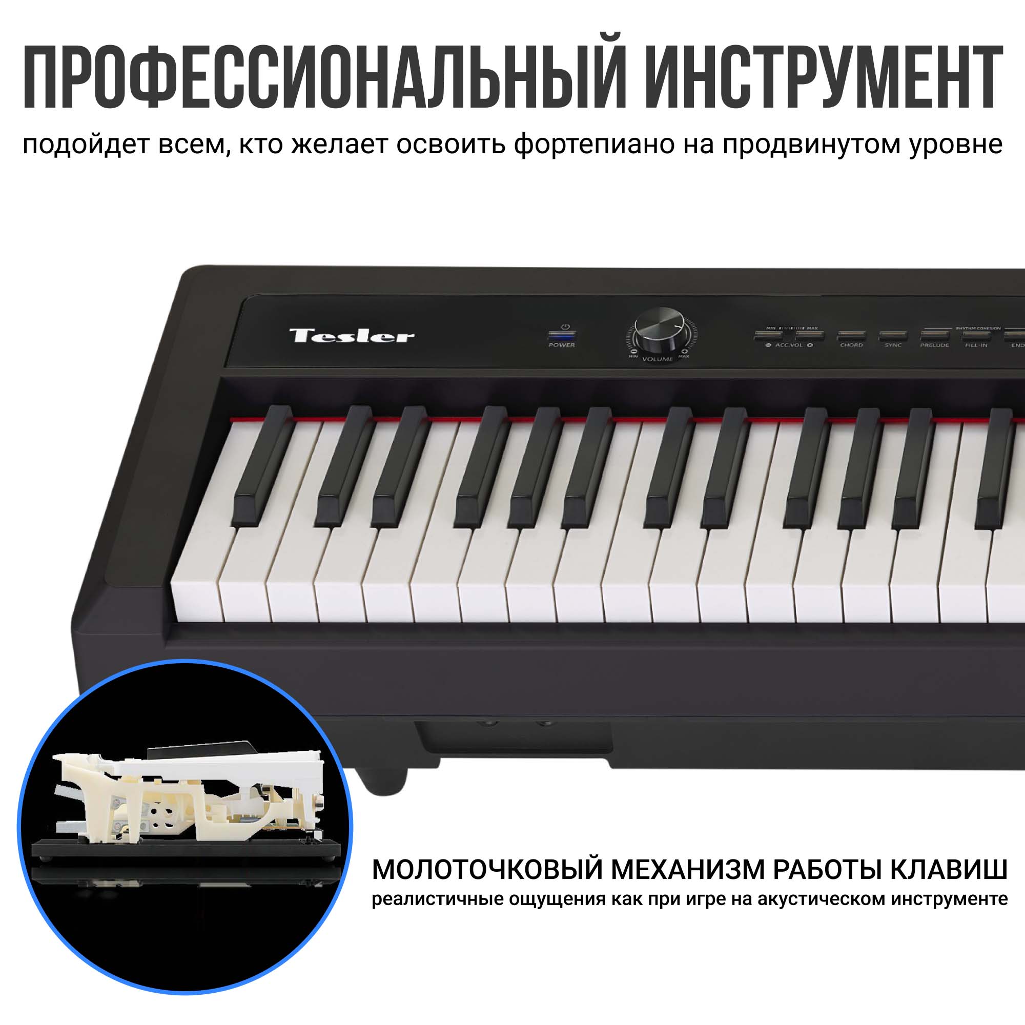 Tesler STZ-8800 — отличный вариант для тех, кто ценит качественный звук и функционал. Инструмент обладает ярким тембром концертного рояля, передающим краски от глубоких басов до хрустальных верхних регистров благодаря мощной стерео-акустической системе.