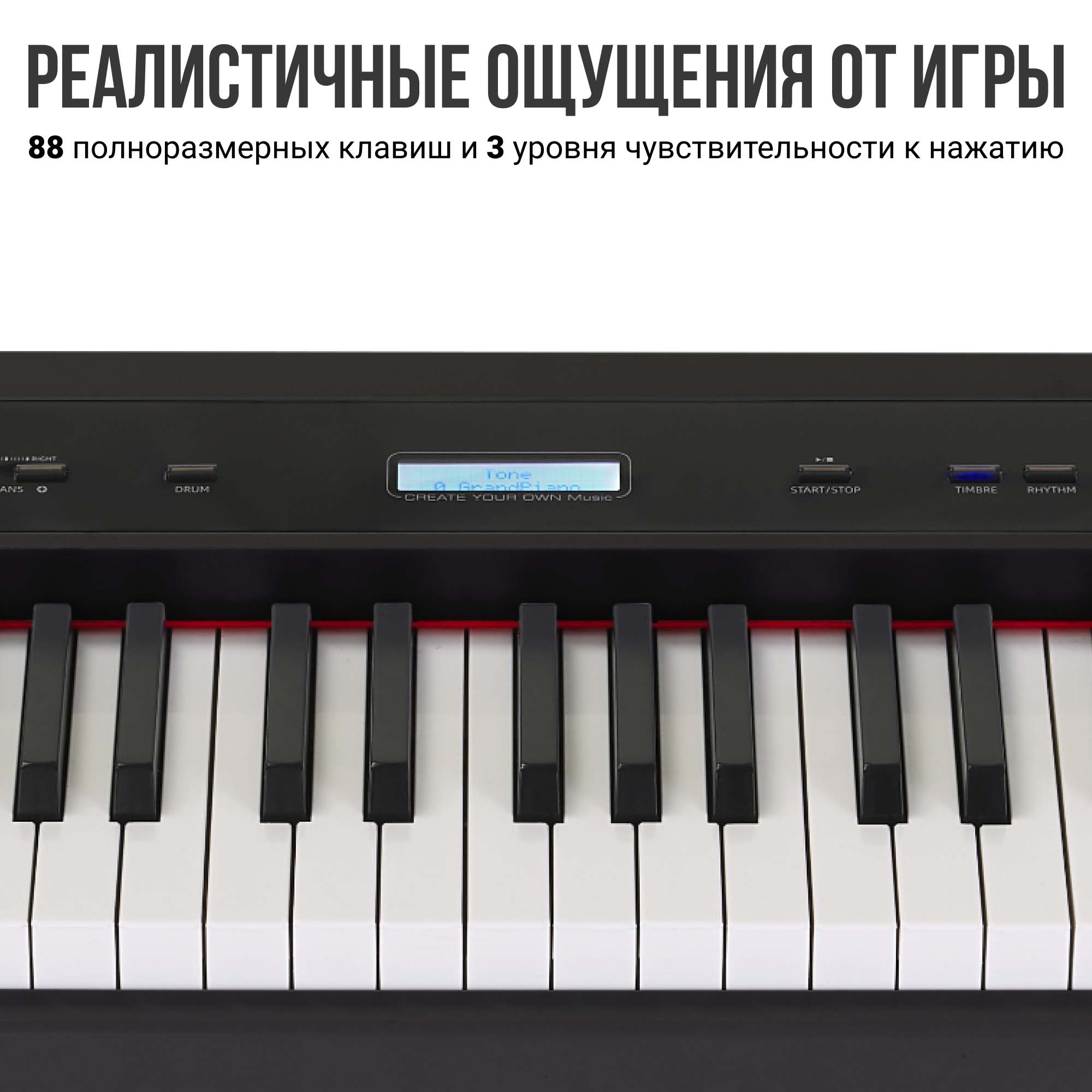 Возможность настройки уровня чувствительности к нажатию подарит ощущение максимального контакта с инструментом, и позволит оттачивать самые тонкие технические нюансы.