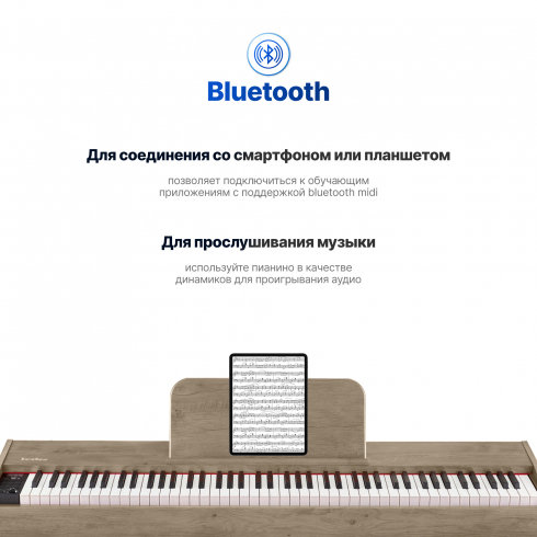 * В моделях, выпущенных во второй половине 2024 года, предусмотрен модуль Bluetooth для сопряжения со смартфоном/планшетом. При этом он может подключаться к ПО для обучения игре на пианино с поддержкой Bluetooth MIDI на сопряженном устройстве. При Bluetooth-подключении инструмент также может быть использован в качестве внешних динамиков для проигрывания аудио.