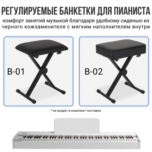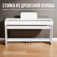 Вы также можете дополнительно приобрести подставку под данный инструмент – ST-8805. Она надёжно удерживает пианино во время игры благодаря креплению музыкального инструмента к своей основе. При установке цифрового пианино на данную подставку инструмент будет иметь ту же высоту клавиш, что и акустическое фортепиано, что подарит исполнителю комфорт при занятиях музыкой.