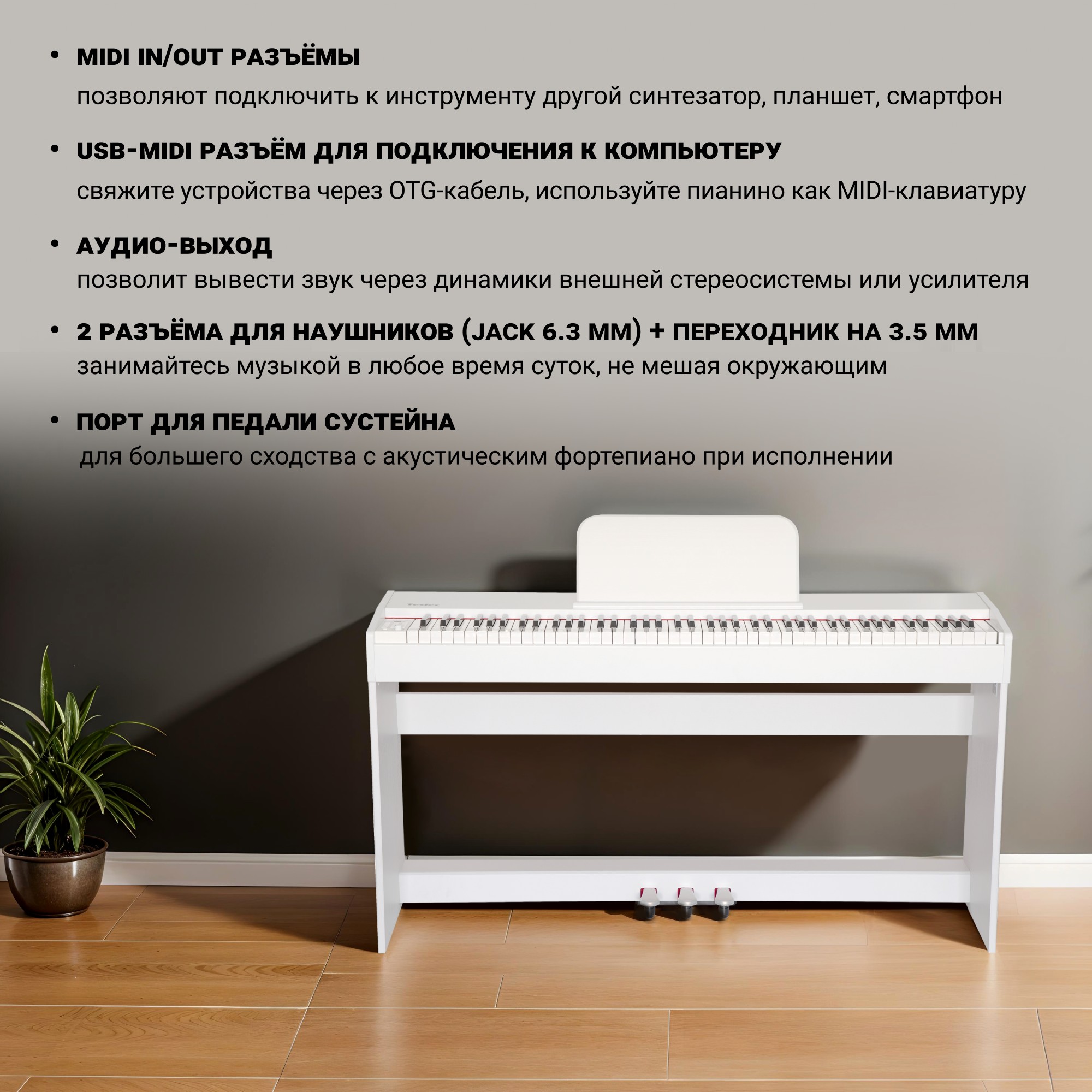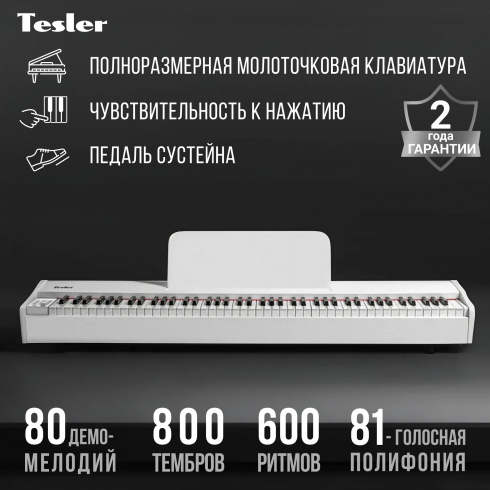Цифровое профессиональное пианино Tesler STZ-8805 WHITE будет отличным приобретением как для опытных игроков, так и для начинающих музыкантов.