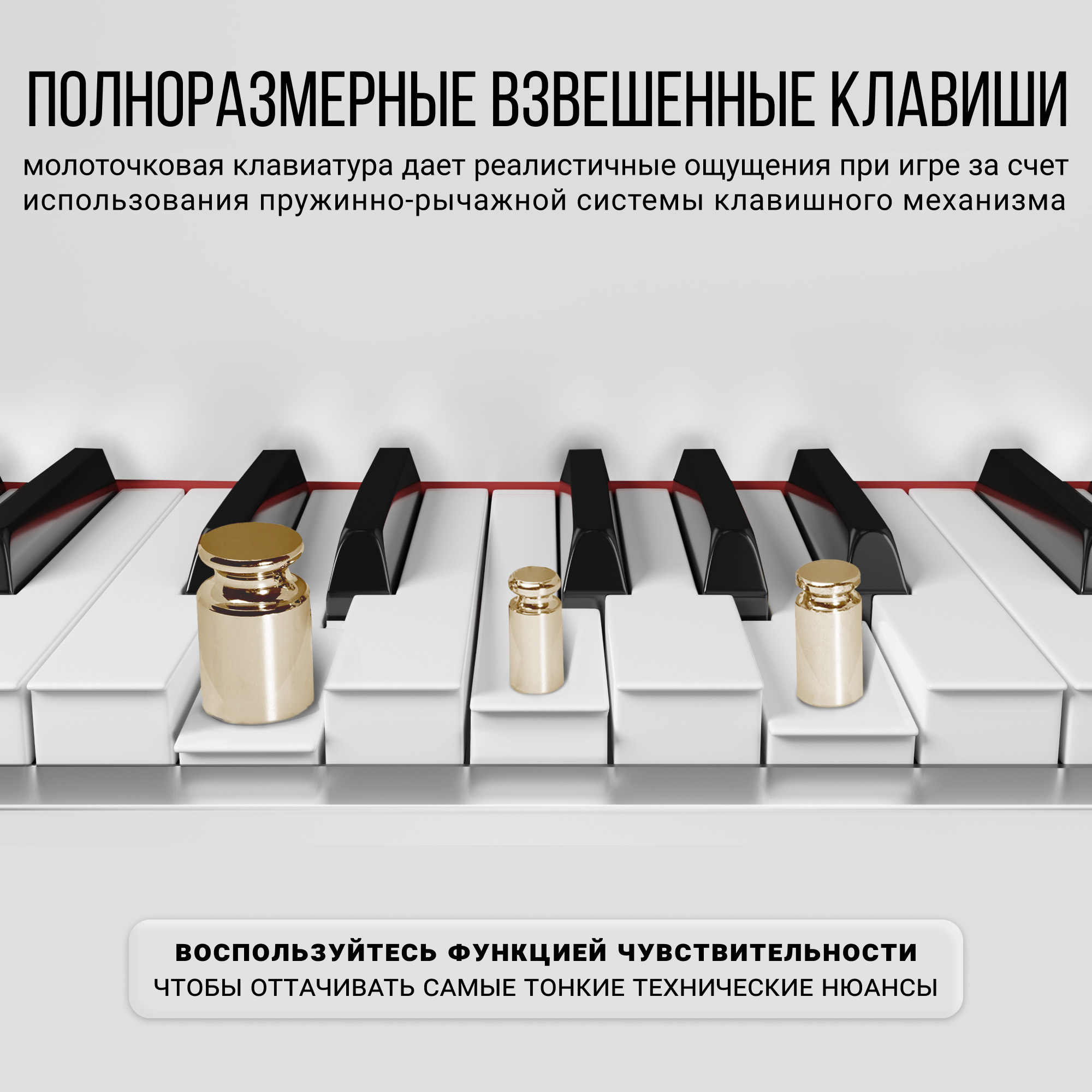 Функция чувствительности к нажатию подарит ощущение максимального контакта с инструментом, и позволит оттачивать самые тонкие технические нюансы.