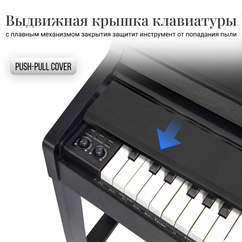 Пианино Tesler STZ-8810 оснащено выдвижной крышкой для клавиш с механизмом Push-pull. В отличии от стандартной откидной крышки, такая выдвижная конструкция исключает риск травмы из-за случайного захлопывания. После окончания игры вы можете закрыть сдвижную крышку клавиш, чтобы уменьшить количество пыли, попадающей внутрь. Это поможет сохранить инструмент в хорошем состоянии, и увеличить срок его службы.