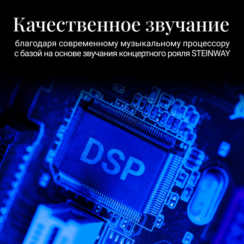 Полноразмерная молоточковая клавиатура дает реалистичные ощущения как при игре на акустическом инструменте за счет использования пружинно-рычажной системы клавишного механизма. Клавиши в нижнем регистре нажимаются немного тяжелее, а в верхнем регистре – легче, что помогает воспроизводить все нюансы тембров с глубокой градацией звуковой окраски, зависящей от силы удара.