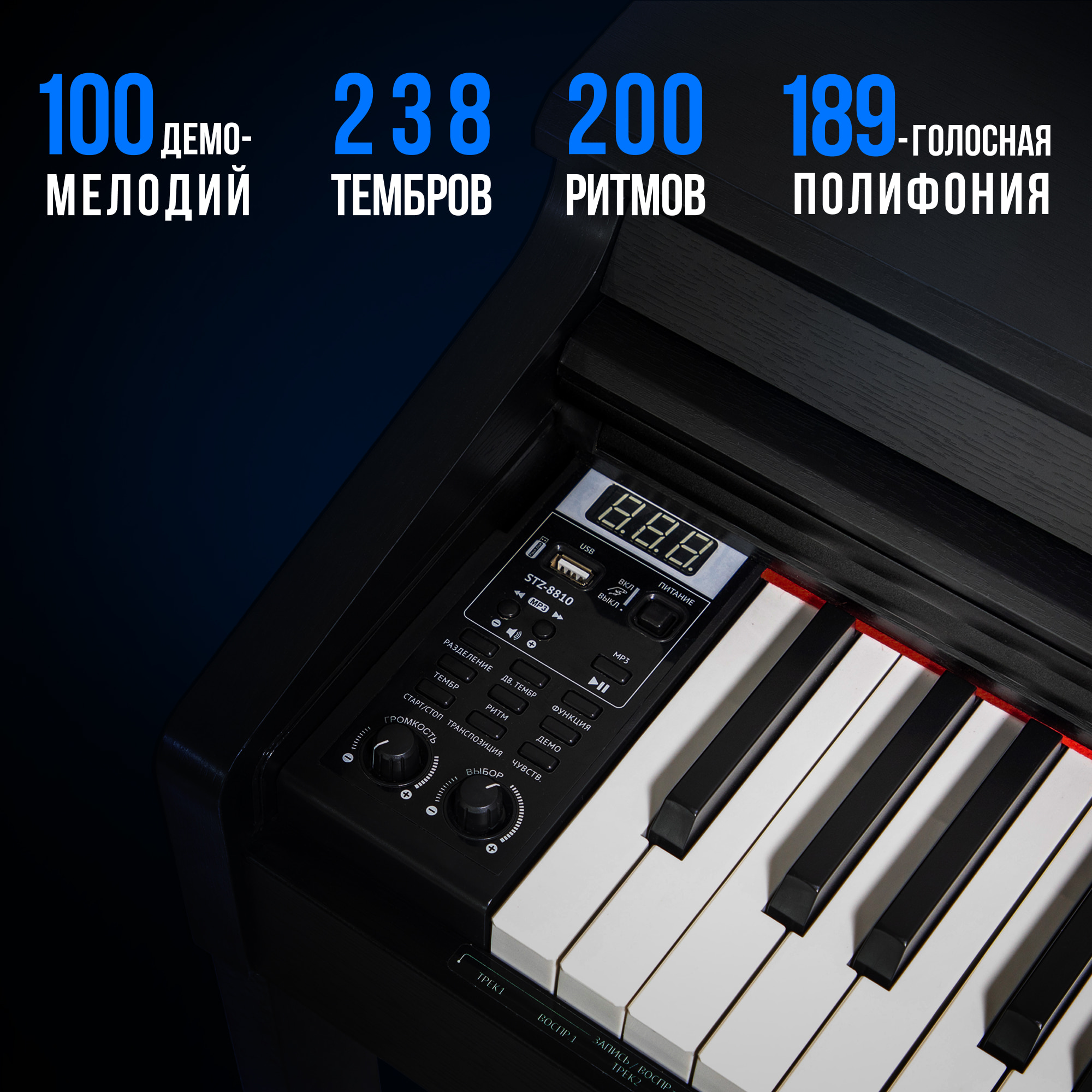 Tesler STZ-8810 — отличный вариант для тех, кто ценит качественный звук и функционал. Инструмент обладает ярким тембром концертного рояля, передающим краски от глубоких басов до хрустальных верхних регистров благодаря мощной стерео-акустической системе.