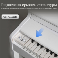 Пианино Tesler STZ-8810 оснащено выдвижной крышкой для клавиш с механизмом Push-pull. В отличии от стандартной откидной крышки, такая выдвижная конструкция исключает риск травмы из-за случайного захлопывания. После окончания игры вы можете закрыть сдвижную крышку клавиш, чтобы уменьшить количество пыли, попадающей внутрь. Это поможет сохранить инструмент в хорошем состоянии, и увеличить срок его службы.