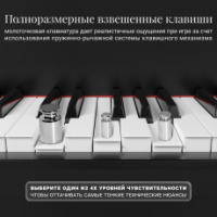 Возможность выбрать один из четырёх уровней чувствительности к нажатию подарит ощущение максимального контакта с инструментом, и позволит оттачивать самые тонкие технические нюансы.