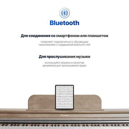 * В моделях, выпущенных во второй половине 2024 года, предусмотрен модуль Bluetooth для сопряжения со смартфоном/планшетом. При этом он может подключаться к ПО для обучения игре на пианино с поддержкой Bluetooth MIDI на сопряженном устройстве. При Bluetooth-подключении инструмент также может быть использован в качестве внешних динамиков для проигрывания аудио.