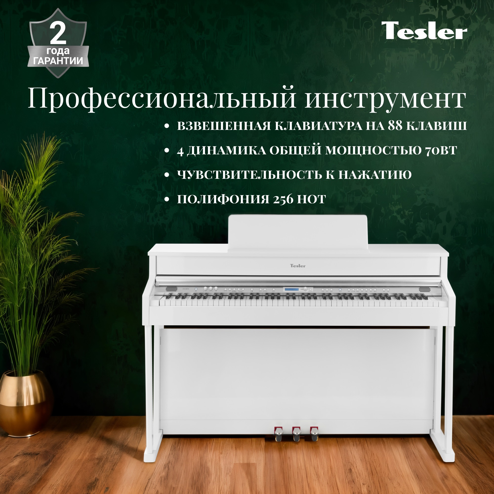 Tesler STZ-8870 — отличный вариант для тех, кто ценит качественный звук и функционал. Инструмент обладает ярким тембром концертного рояля, передающим краски от глубоких басов до хрустальных верхних регистров благодаря мощной стерео-акустической системе.