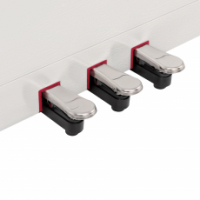 Для большей выразительности при исполнении, и сходства с акустическим фортепиано в данной модели цифрового пианино предусмотрено 3 педали. Педаль сустейна (правая) - при нажатии звук будет продолжаться после того, как клавиши отпустили, для создания объёмного звучания. Нажатие на педаль пиано (левая) смягчает звук, уменьшая его громкость. После нажатия задерживающей педали (средняя) задержится звучание только тех нот, которые были зажаты во время применения педали.