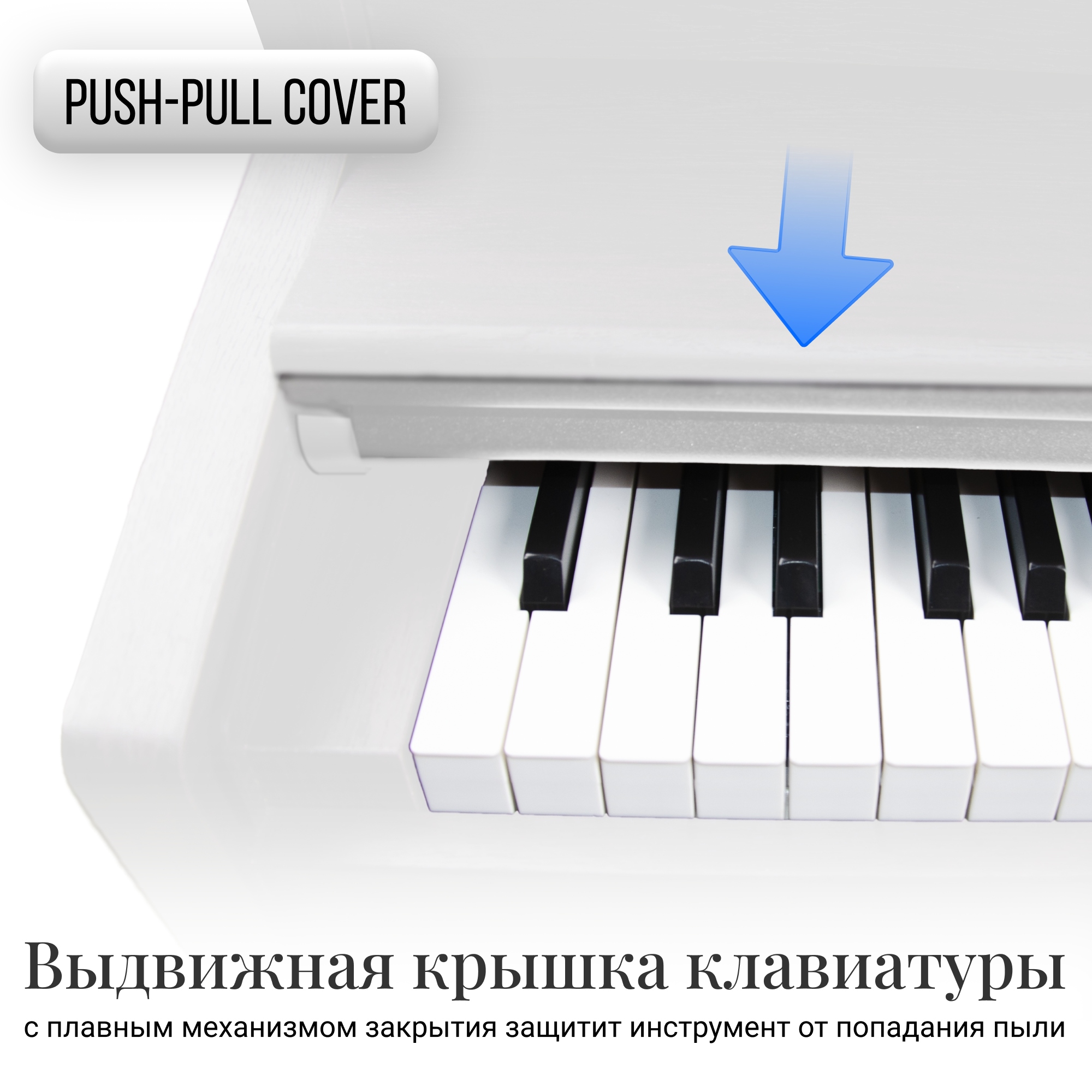 Пианино Tesler STZ-8870 оснащено выдвижной крышкой для клавиш с механизмом Push-pull. В отличии от стандартной откидной крышки, такая выдвижная конструкция исключает риск травмы из-за случайного захлопывания. После окончания игры вы можете закрыть сдвижную крышку клавиш, чтобы уменьшить количество пыли, попадающей внутрь. Это поможет сохранить инструмент в хорошем состоянии, и увеличить срок его службы.