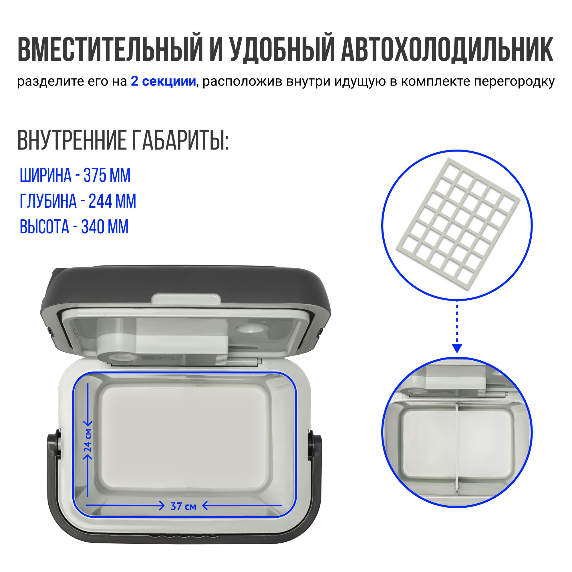 С помощью прочной и удобной ручки легко донести холодильник до своей машины. В сложенном виде ручка является стопором от нежелательного открытия.