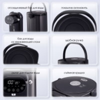 Термопот TP-4045 не только кипятит воду, но и нагревает её до одного из шести предустановленных значений (95, 85, 75, 65, 55, 45 градусов). После закипания включится режим поддержания температуры, и вода останется горячей, чтобы вы могли наслаждаться любимыми напитками в любой момент. Качественная термоизоляция препятствует быстрому остыванию прибора даже при отключенном питании. Мощности 1200 Вт достаточно, чтобы вода закипала в считанные минуты. Чтобы сэкономить время и электроэнергию, настройте отложенный старт, установив нужное время начала кипячения.
