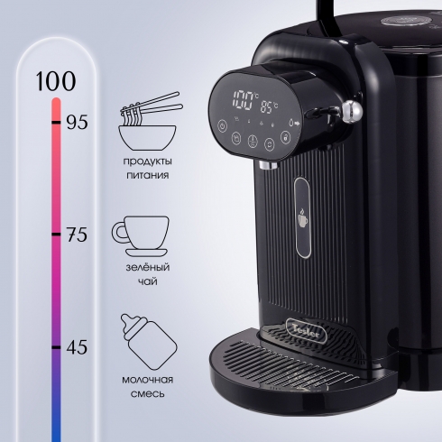 Компактный термопот с сенсорным управлением Tesler TP-4045 позволит вам быстро и безопасно кипятить воду. Благодаря удобной подаче воды и возможности настроить температурный режим это устройство будет полезным на любой кухне. Вам больше не нужно будет ждать, пока закипит чайник, чтобы насладиться любимым горячим напитком в любое время суток.
