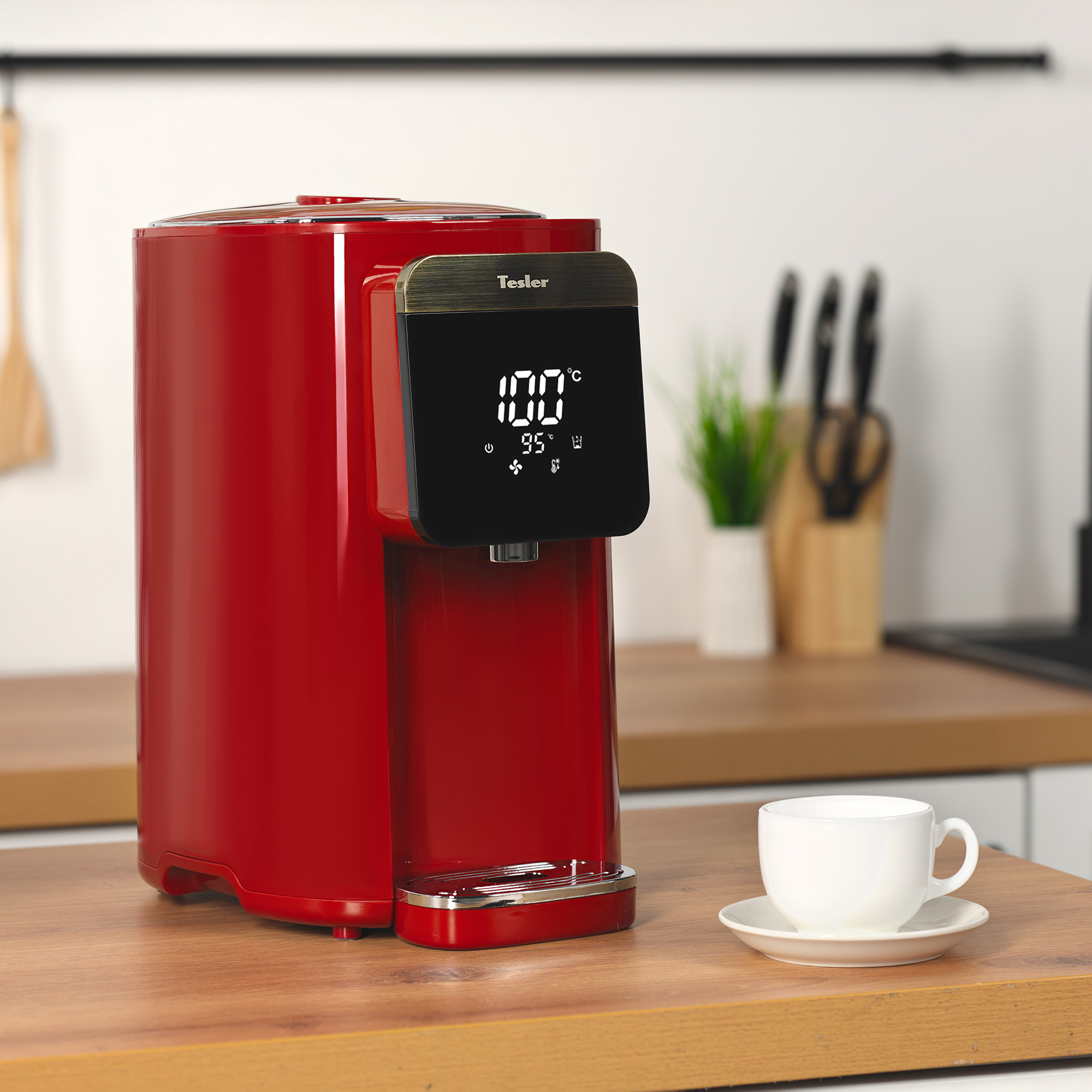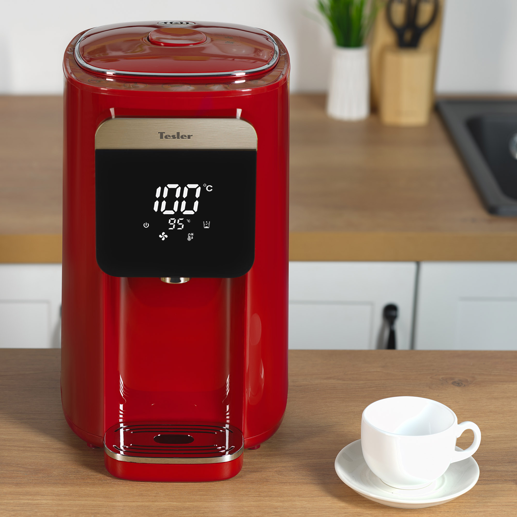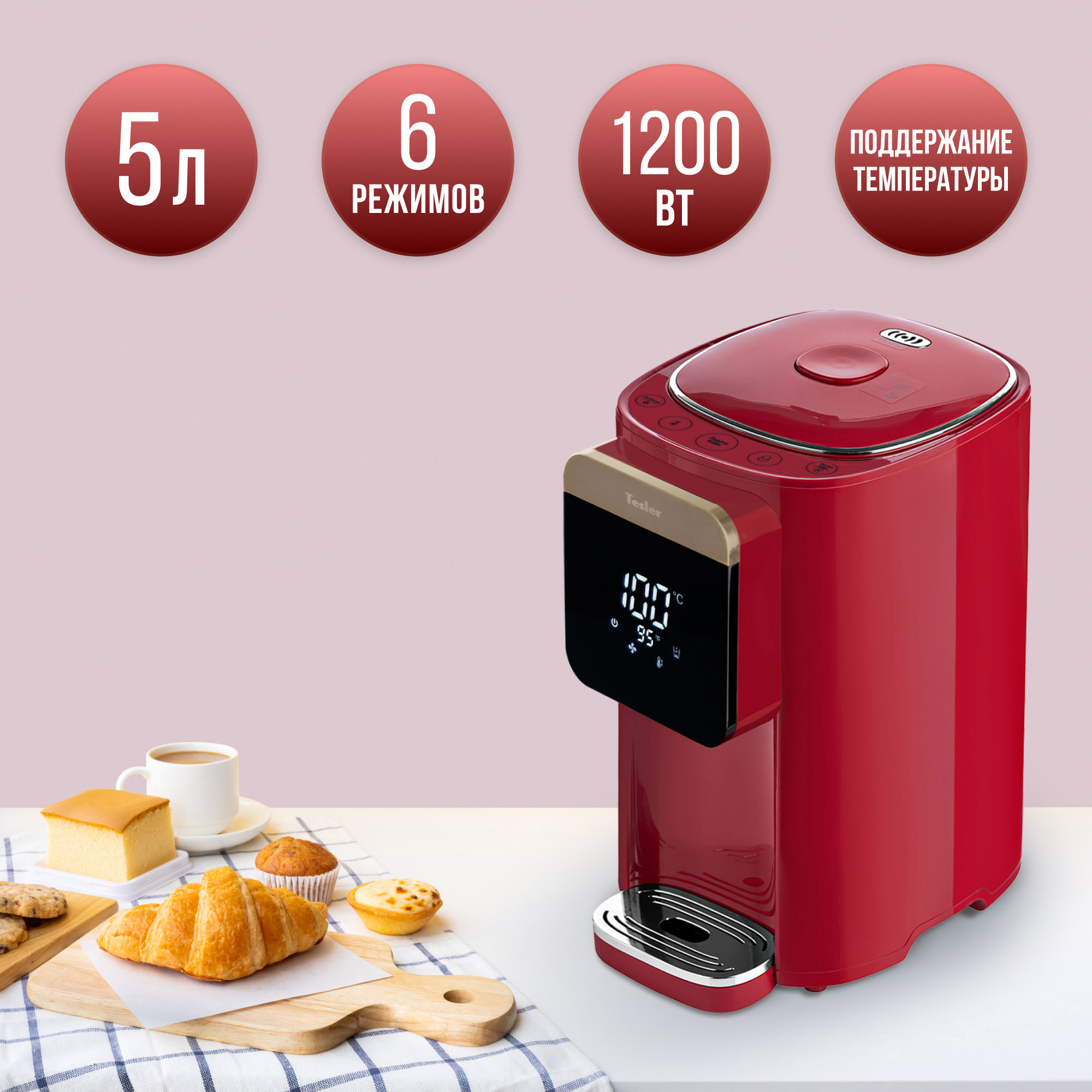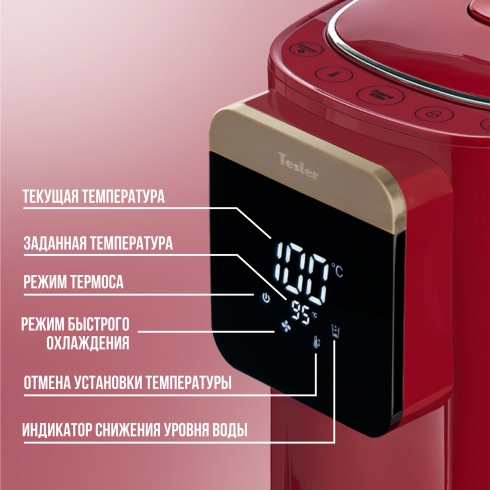 Термопот Tesler Margherita TP-5045 не только кипятит воду, но и нагревает её до одного из шести предустановленных значений (95, 85, 75, 65, 55, 45 градусов). Выбранная температура поддерживается постоянно.