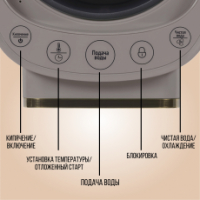 Объем воды 5 литров закипает быстро благодаря высокой мощности в 1200Вт. Информативный дисплей покажет вам не только заданный режим, но и температуру в режиме реального времени. Когда вода внутри колбы будет заканчиваться – термопот сам оповестит вас с помощью сигнала. При необходимости подачу воды можно заблокировать.