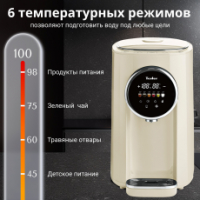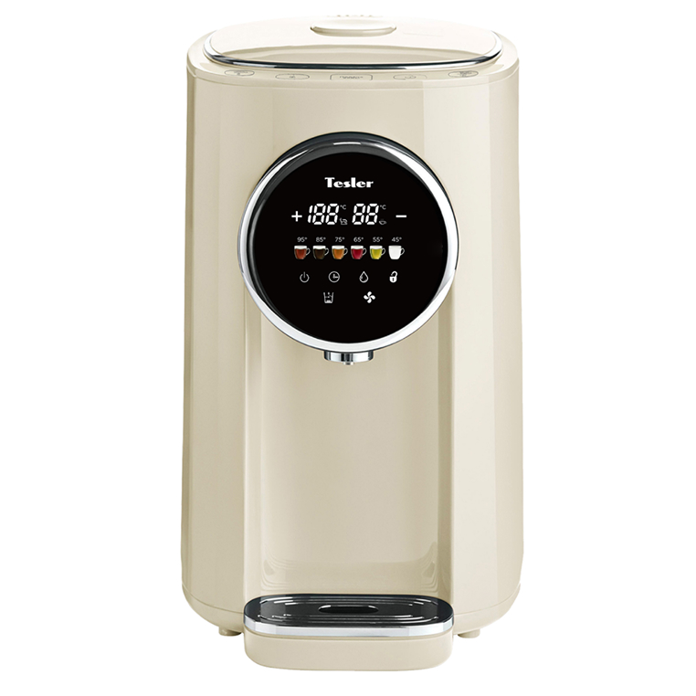Термопот Tesler TP-5050 не только кипятит воду, но и позволяет нагревать её до одной из шести заранее установленных температур: от 45 °C до 95 °C. Устройство стабильно поддерживает выбранный температурный режим, что удобно для приготовления разных видов напитков - от зелёного чая до детских смесей.