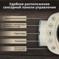 Функция быстрого охлаждения позволяет оперативно снизить температуру воды до нужного уровня сразу после кипячения. Все детали, соприкасающиеся с водой, выполнены из безопасных и экологичных материалов. Внутренняя колба из нержавеющей стали имеет специальное покрытие, предотвращающее образование накипи и коррозии, что особенно важно при использовании обычной водопроводной воды. Уход за прибором упрощается благодаря съёмной крышке.